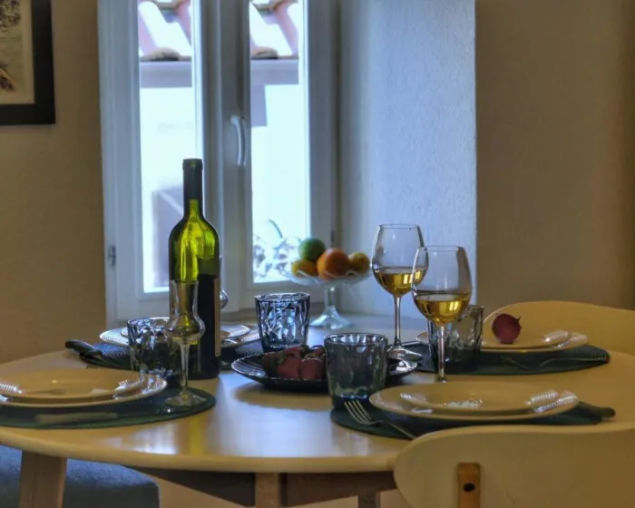 Prostrani stan sa terasom i pogledom na more ima 2 spavaće sobe, dnevni boravak, flat-screen TV, opremljenu kuhinju sa mašinom za pranje sudova i rernom, i 1 kupatilo sa tuš kabinom. Privatan ulaz vodi goste u stan, gde mogu uživati u vinu ili šampanjcu i voću. Objekat ima spoljni prostor za ručavanje.