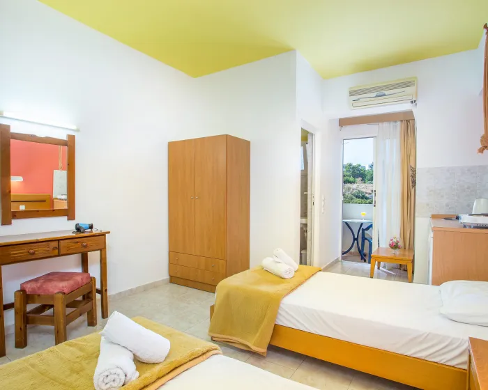 Klima uređaj osigurava da sobe održavaju ugodnu temperaturu. Gosti mogu uživati u pogledu na baštu sa balkona ili terase. Sve sobe su popločane i uključuju bračni krevet. Za mlađe goste mogu se zatražiti dečiji krevetići i dodatni kreveti. Sadržaji u nekim sobama uključuju sef i minibar. Standardno je obezbeđena i čajna kuhinja sa frižiderom, mini frižiderom i aparatom za kafu/čaj. Telefon i WiFi (bez dodatne naknade) pružaju sve što je potrebno za udoban odmor. Kupatila su opremljena tušem i kadom, kao i fenom za kosu. Kompleks ima sobe za nepušače.