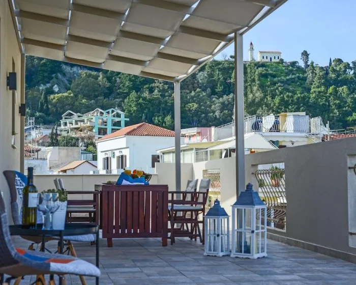 Sa boravkom u ovom stanu u Zakintosu, bićete u roku od 15 minuta vožnje od trajektne luke Zakintos i plaže Tsilivi. Ovaj stan je udaljen 4.1 milja (6.6 km) od plaže Laganas i 5.2 milja (8.4 km) od plaže Kalamaki.