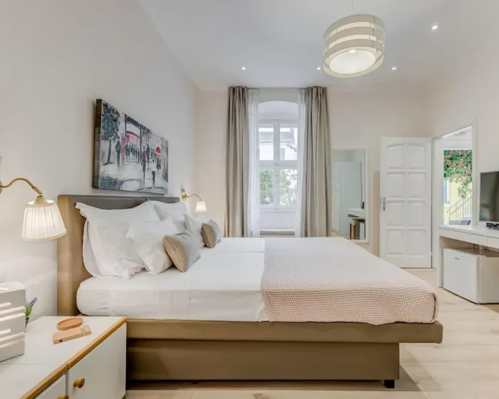 Osećajte se kao kod kuće u jednoj od 5 individualno dekorisanih soba za goste, sa mini barom i aparatom za espreso. Vaša soba dolazi sa krevetom od memorijske pene.