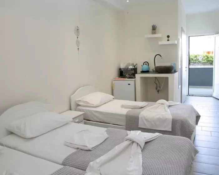 Svaka smeštajna jedinica ima kupatilo/wc, kompletno opremljen kuhinjski deo, prostranu terasu, TV, WiFi internet i klima uređaj (uključen u cenu aranžmana)