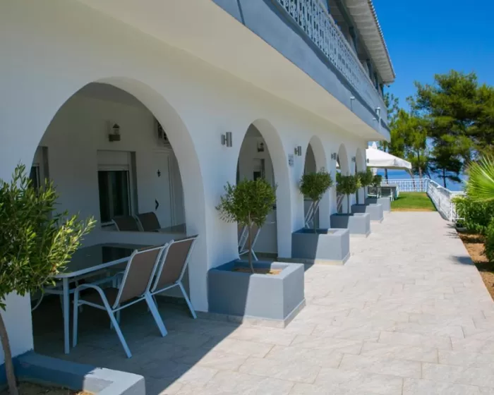 Vila Aelia Sea View Kalithea je smeštena u velikom uređenom dvorištu sa dosta zelenila i sa panoramskim pogledom na more i zaliv. Od centra Afitosa je udaljena 1500 metara, koliko i od Kalitee, a od prve plaže je udaljena 500 metara. Aelia sea view je objekat sa prostranim smeštajnim jedinicama, u potpunosti renoviranim. Poseduje studije, apartmane, suite I bungalov, namenjen za smeštaj od dve do šest osoba, a smešteni su u prizemlju i na prvom spratu. Suita nudi ekskluzivnost. Smeštena je na prvom spratu ima ogromnu terasu sa direktnim pogledom na more i namenjena je za smeštaj 6 osoba. Bungalov je odmah pored glavne zgrade i nudi pogled na divan vrt. Odličan je za smeštaj za porodice sa decom. Objekat ima sopstveni parking, pa je preporuka za goste koji koriste sopstveni prevoz.