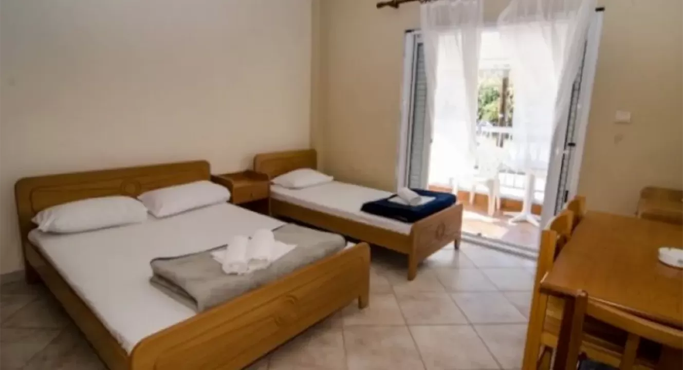 Vila Afroditi Paralija Vrasna se nalazi na 30-ak metara udaljenosti od plaže, u prvom redu kuća do mora. U ponudi su dvokrevetni, trokrevetni i četvorokrevetni studiji smešteni u izdignutom prizemlju i na prvom spratu. Afroditi Paralija Vrasna poseduje lepo uređeno dvorište sa zidanim roštiljem. Doplata za korišćenje klima-uredjaja.