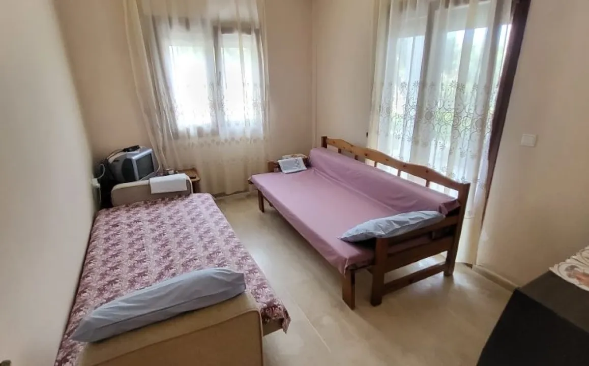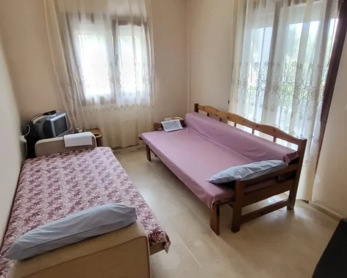 Prostrani triplex sa kompletno opremljenom kuhinjom sa trpezarijom, kupatilom, terasom i klima uređajem (čije se korišćenje plaća na licu mesta 5 eura dnevno), nalazi se u prizemlju i ima tri odvojene sobe sa francuskim ili dva singl kreveta.