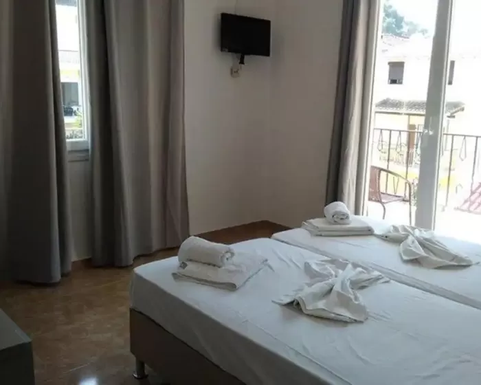 kupatilo, peškiri, opremljena mini-kuhinja, klima-uredjaj, TV, balkon sa garniturom za sedenje