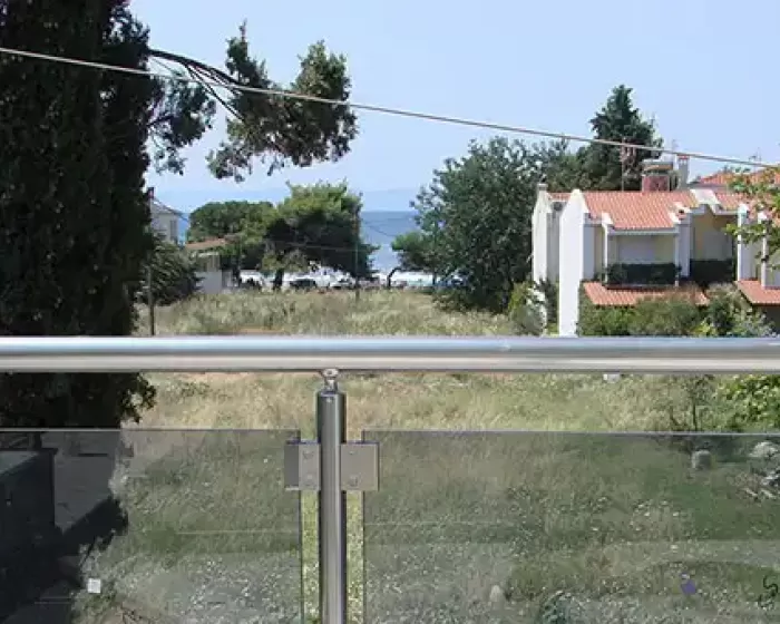 Suite - prizemlje, dnevni boravak sa kuhinjom i 1 sofom na razvlačenje 2,00 / 1,40, odvojena spavaća sobe sa vratima sa bračnim krevetom; gore: spavaća soba bez vrata - 2 kreveta. Balkon na svakom spratu.