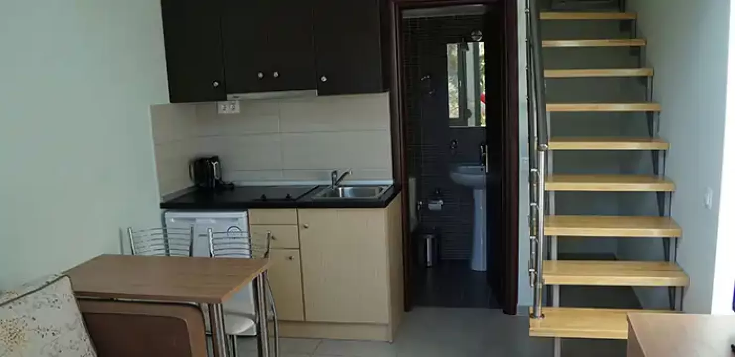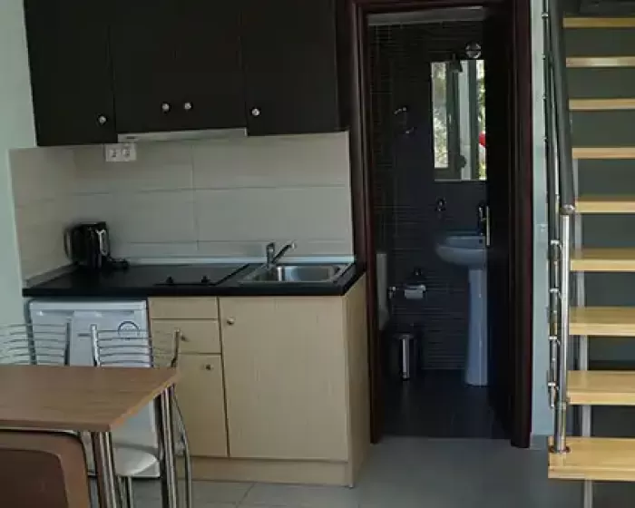 Apartment - prizemlje, dnevni boravak sa mini kuhinjom, sofa na razvlačenje 200/140, tuš, WC. Gornji sprat ( bez vrata) - bračni krevet (ili 2 odvojena ležaja).