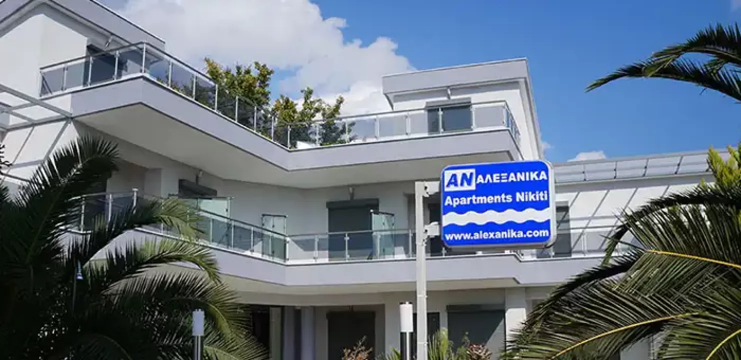 Vila Aleksanika se nalazi u mirnom delu Nikitija, na Sitoniji, na oko 100 metara od plaže i u blizini glavnog puta i centra, što omogućava jednostavan pristup lokalnim sadržajima i obali. Okružena je zelenilom i idealna je za porodični odmor ili boravak u paru.