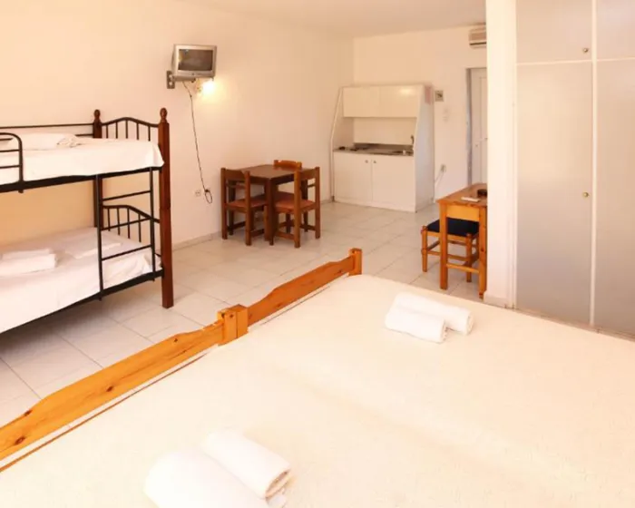 Poseduje studija koja su namenjena za smeštaj od dve do četiri osobe smeštena u prizemlju i na prvom spratu. Sve smeštajne jedinice poseduju čajnu kuhinju, kupatilo/wc, peškire, terasu, WiFi internet, TV, klima uređaj (uz doplatu na licu mesta od 5e dnevno). Vila ima ograđeno dvorište sa baštenskim stolovima i zidanim roštiljem, koje je na raspolaganju gostima, kao i parking.