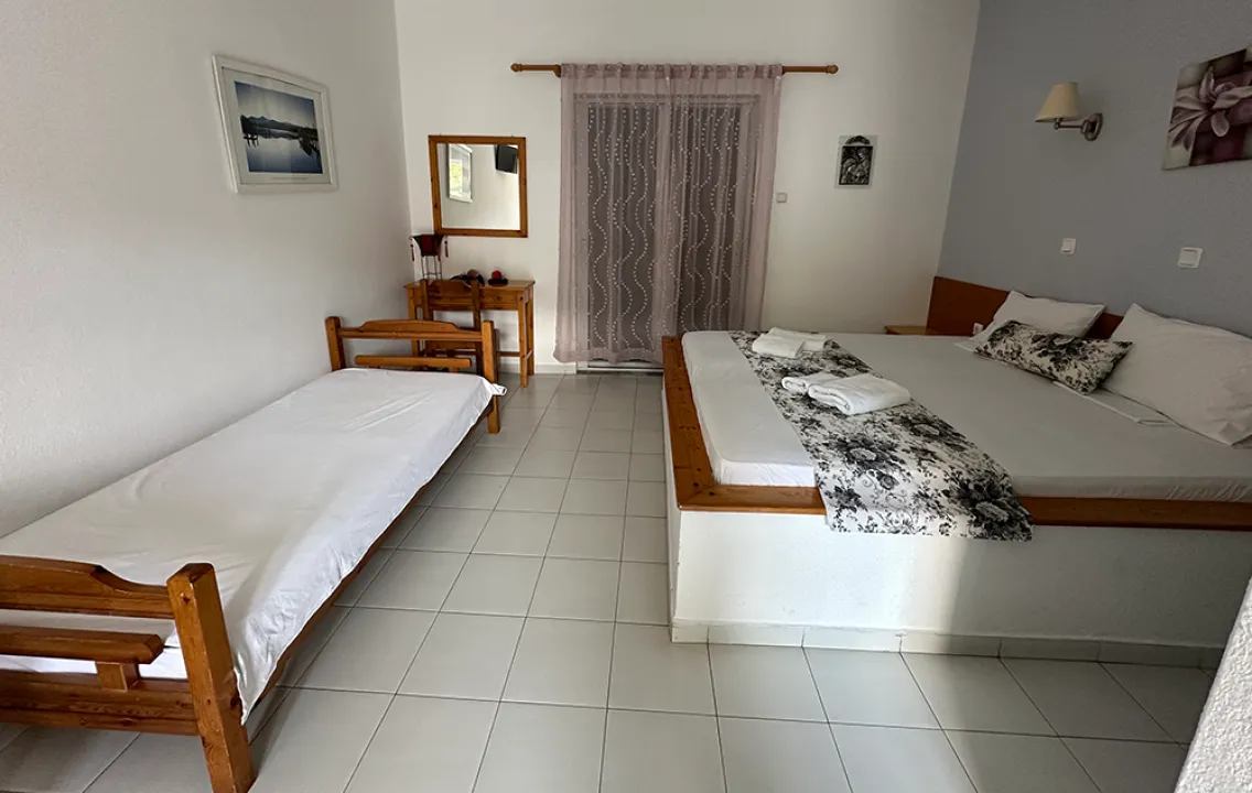Vila Amarilia Skala Rahoni Tasos se nalazi na oko 150 metara udaljenosti od plaže Rahoni, 10 kilometara udajena od glavnog grada i luke ostrva, Limenasa. U sastavu za smeštaj gostiju poseduje studije, koji imogu ugostiti do četiri osobe. Doplata za korišćenje klima uređaja.