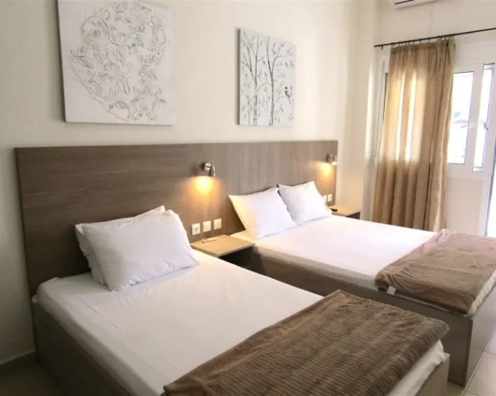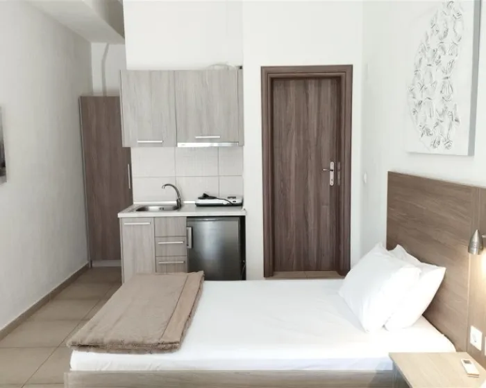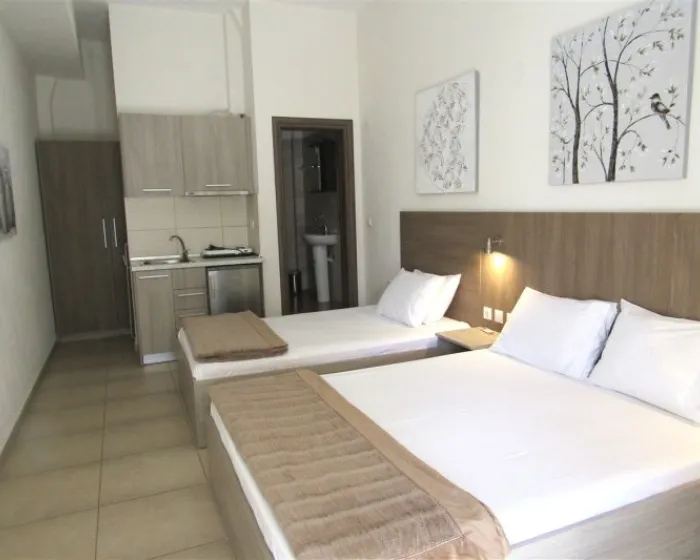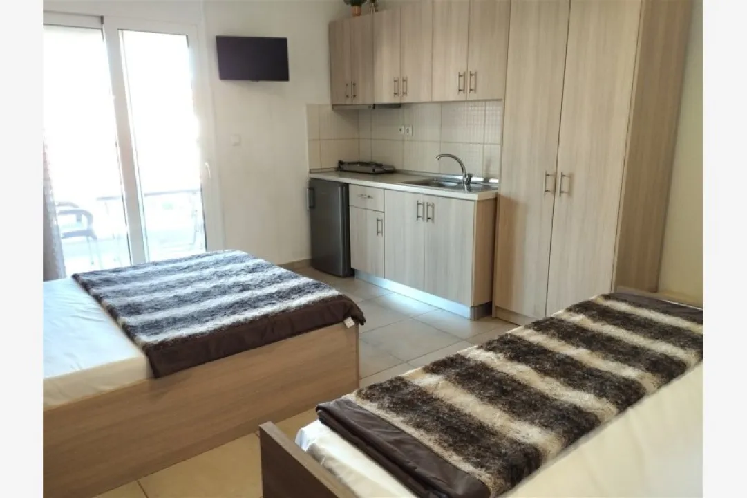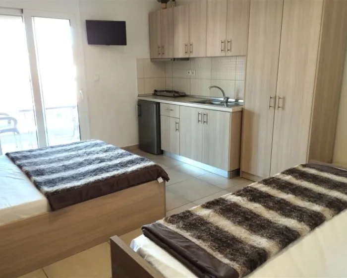 U ponudi ovog objekta novijeg datuma su dvokrevetni, trokrevetni i 1/3+1 studiji (sa velikim i grčko francuskim krevetom). Lepo održavani studiji smešteni su u prizemlju (2 stepenika iznad tla) i na prvom spratu. Svaka smeštajna jedinica poseduje osnovno opremljenu kuhinju, kupatilo, terasu, TV i klima uređaj čije se korišćenje dodatno naplaćuje.