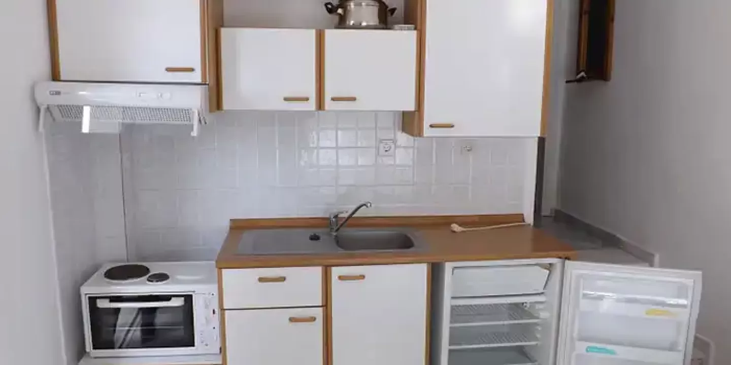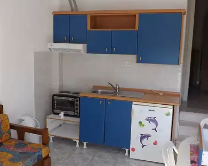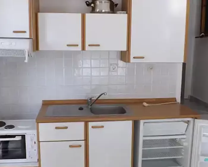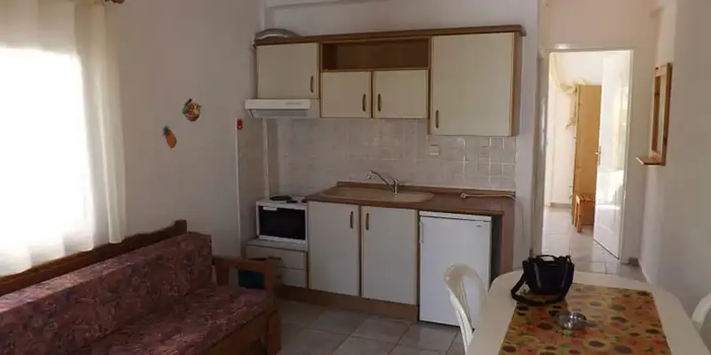 Apartmani na prvom i drugom spratu raspolažu francuskim ležajem (dimenzije 120x190) u spavaćoj sobi, dok neki apartmani u prizemlju u spavaćoj sobi imaju dva singl ležaja. Dnevni boravak raspolaže sofom koja se razvlači i kuhinjski delom u kome se nalazi manji šporet sa rernom, frižider, sudopera i elementi sa osnovnim kuhinjskim inventarom. Izmedju prostorija nalazi se malo kupatilo sa tuš kadom. Smeštajni objekat nema obezbedjeno parking mesto.