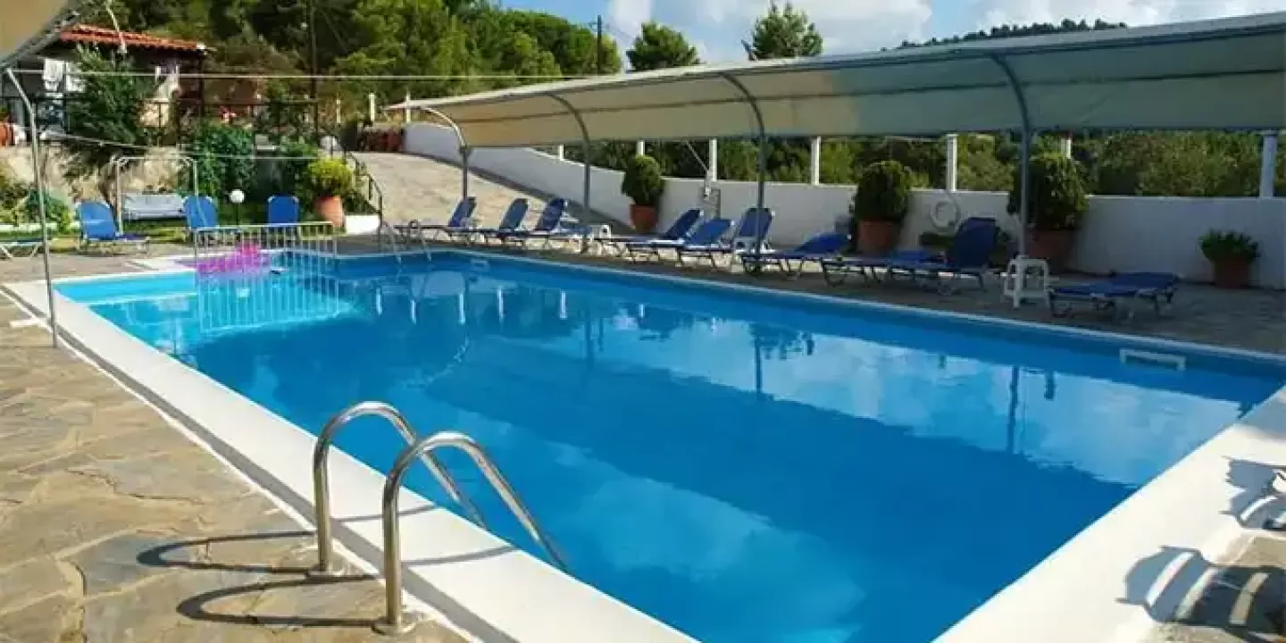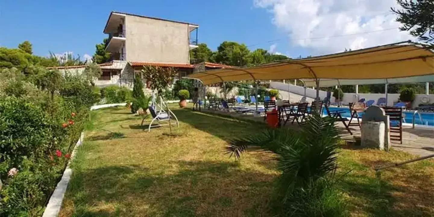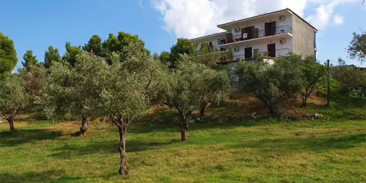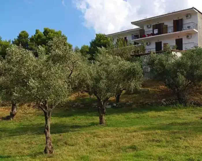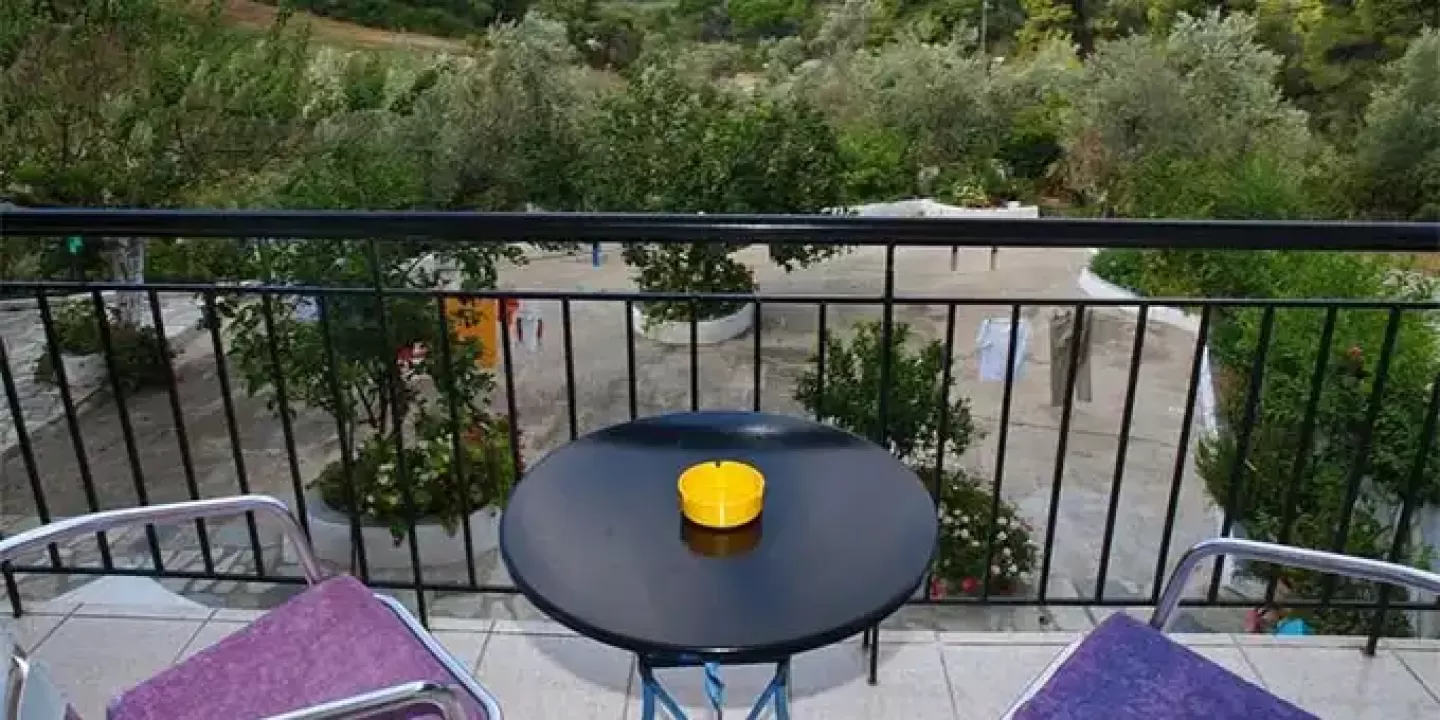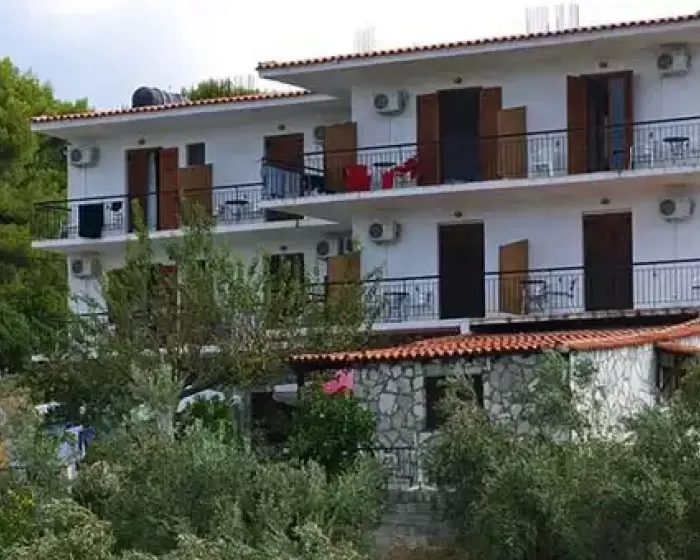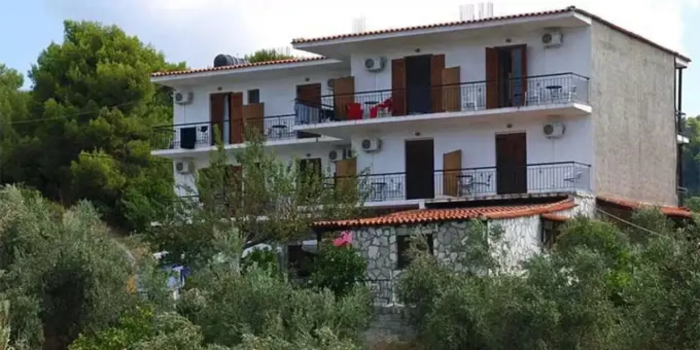Vila Angelos Agia Paraskevi Skiatos se nalazi na oko 300 metara udaljenosti od Vromolimnos plaže i na oko 7 kilometara od aerodorma i 6 kilometara udaljenosti od grada Skijatosa. Autobuska stanica je udaljena oko 350 metara od studija.