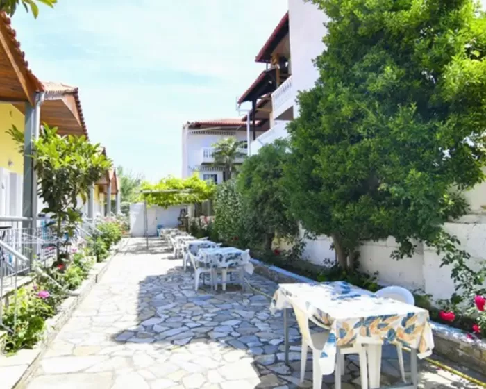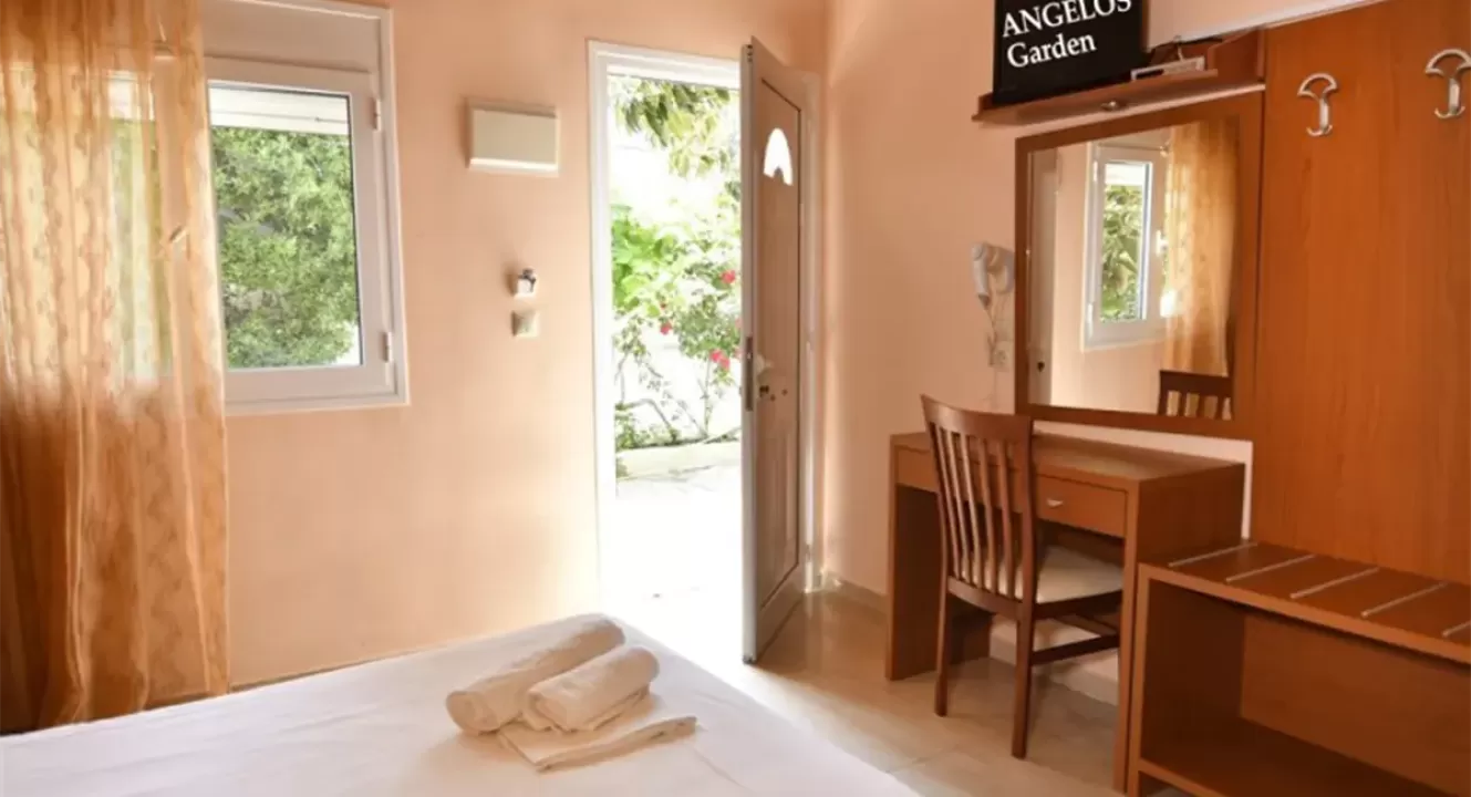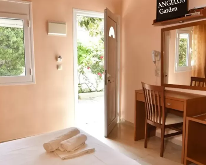 Vila Angelos Garden Toroni se nalazi na samoj plaži popularnog letovališta Toroni, u neposrednoj blizini svih turističkih sadražaja. Ekonomičan smeštaj, vila Angelos Garden se preporučuje porodicama u potrazi za jeftinijem smeštajem na jednoj od najlepših plaža uvek tražene Sitonije. U sastavu za smeštaj gostiju vile Angelos Garden Toroni su na raspolaganju studiji sa bračnim krevetom, i jednim pomoćnim ležajem.Korišćenje klima-uredjaja je uključeno u cenu aranžmana.