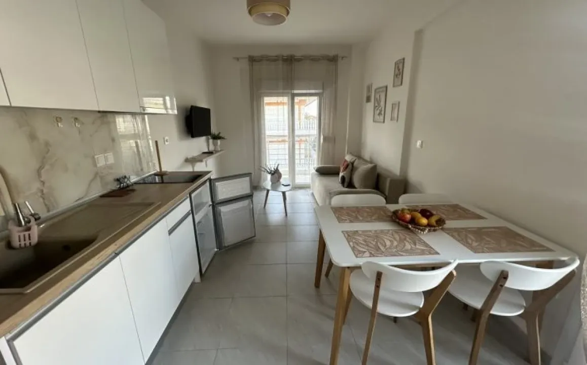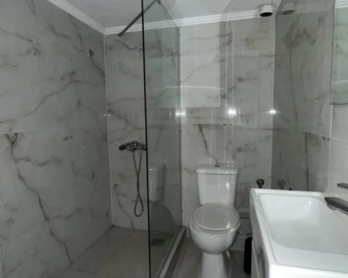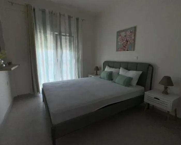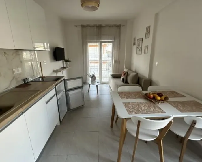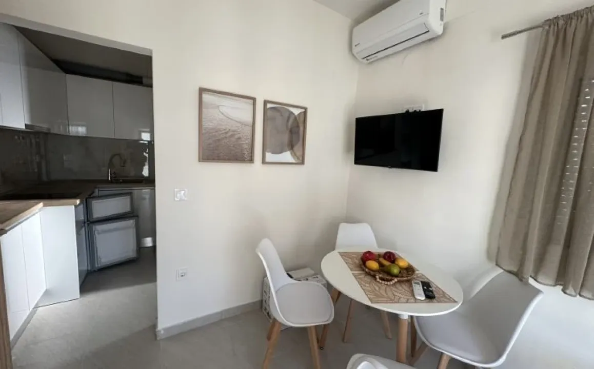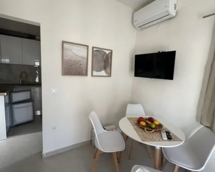 kupatilo, opremljena kuhinja, frižider sa zamrzivačem, klima-uredjaj, SAT TV, terasa sa garniturom za sedenje (ulazni deo)