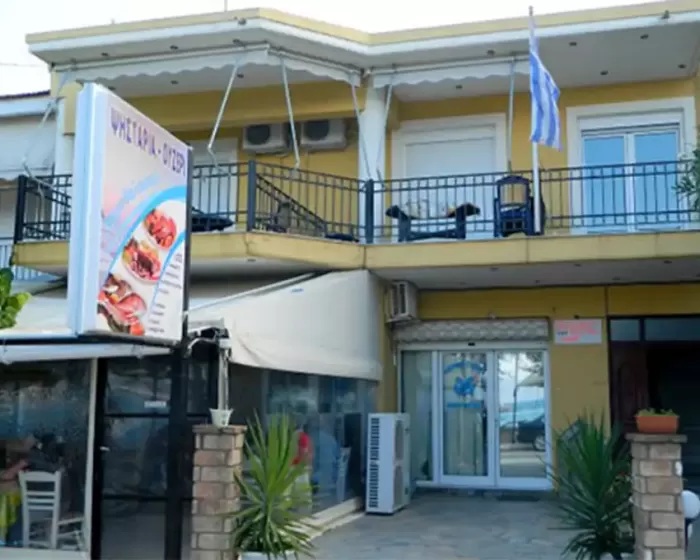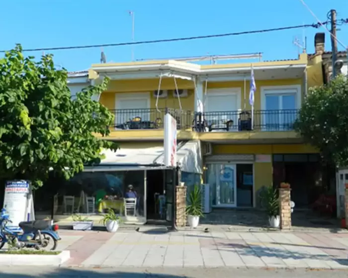 Vila Antonia Pefki se nalazi u odmaralištu Pefki, smeštena je pored šetališta, a od plaže udaljena oko 50 m. Dvokrevetni i trokrevetni studiji se nalaze u potkrovlju, imaju pogled na more. U blizini se nalaze prodavnice, taverne, kafići i restorani. Postoji mogućnost parkiranja u ulici ispred vile.