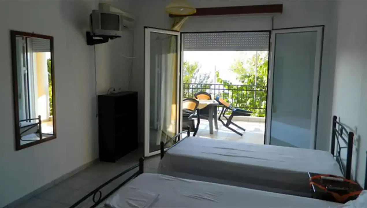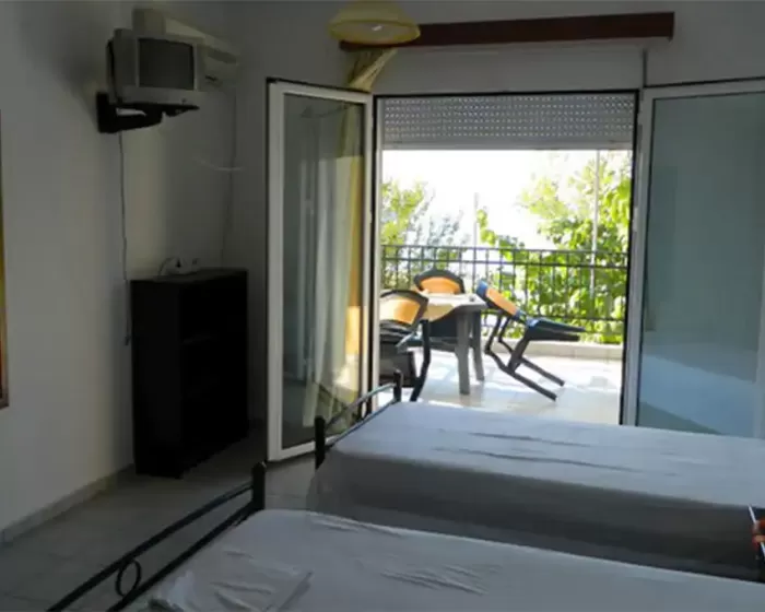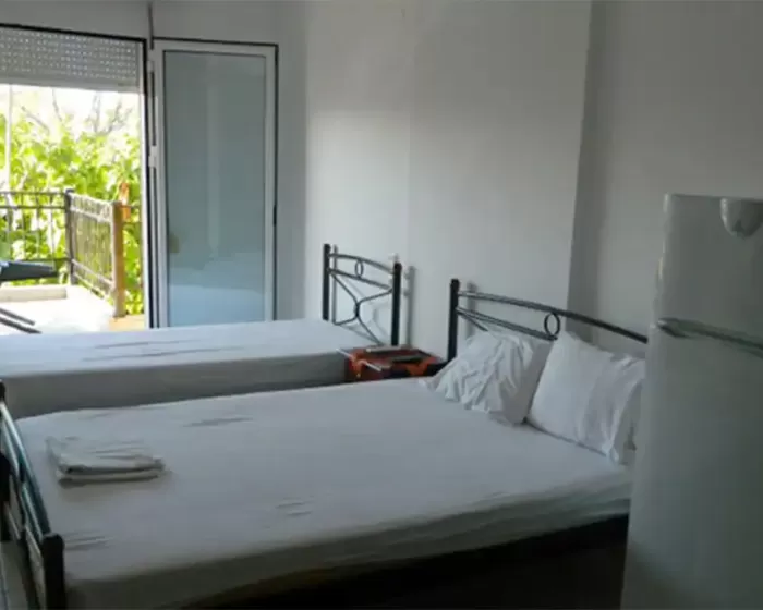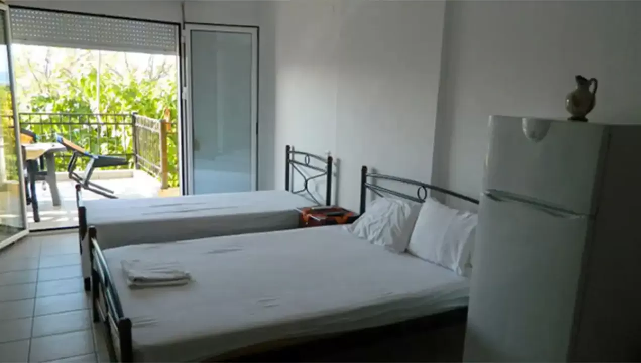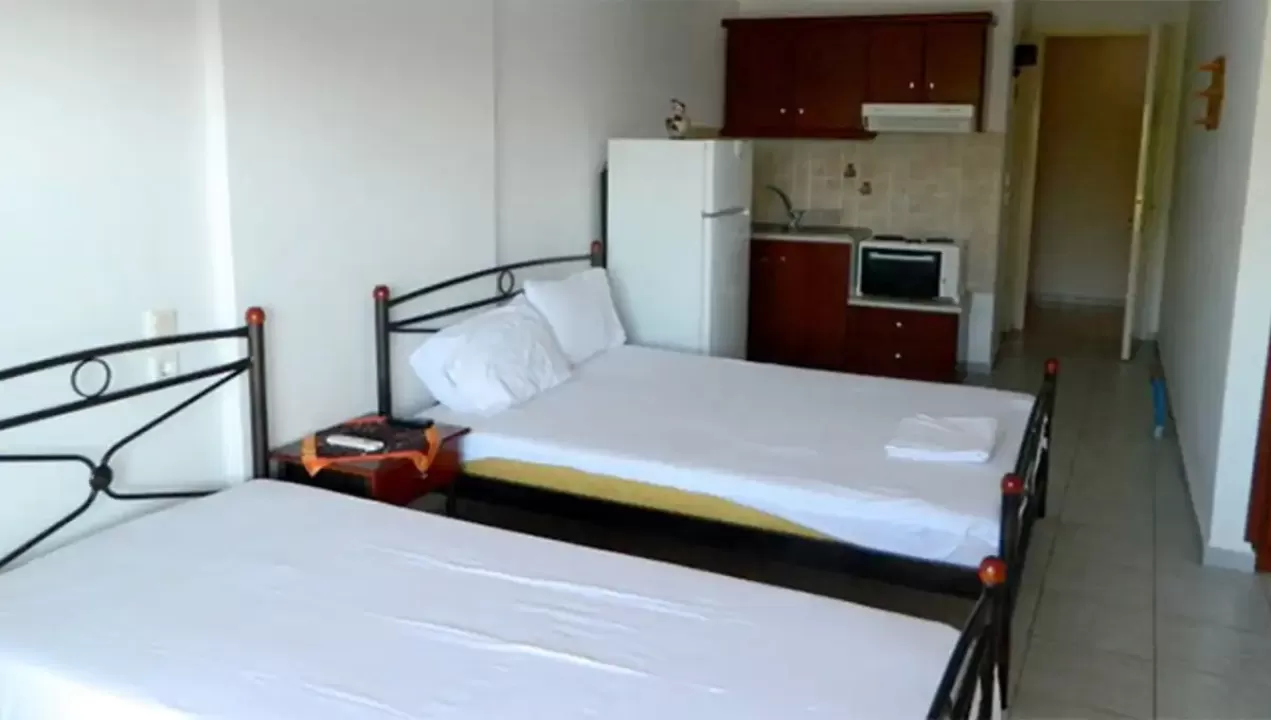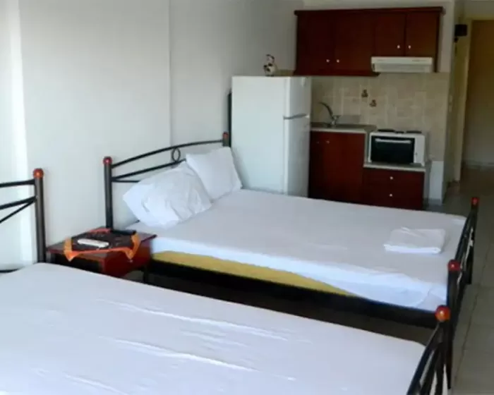 1/3 studio - u jednoj prostoriji mini kuhinja, jedan običan ležaj i jedan bračni ležaj.