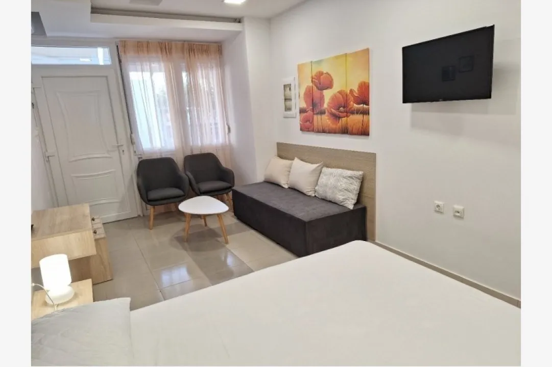 kupatilo, opremljena mini-kuhinja, klima-uredjaj, TV, terasa sa garniturom za sedenje