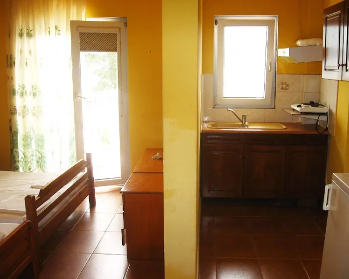 Dvokrevetni studio (1/2 std) – Sastoji se od prostorije sa dva standardna ležaja, u kojoj se nalazi kuhinja;