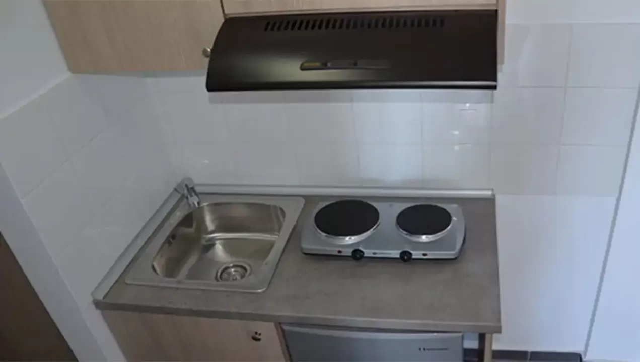 1/2 studio: poseduje ili dva standard ležaja ili francuski ležaj, TV/KAT, ormar, noćni stočić, A/C (klima uredjaj) uračunat u cenu, besplatnu wifi internet konekciju, kompletno opremljenu kuhinju sa rešoom sa dve ringle, frižider. Kupatilo sa TUŠ/WC. Stidiji su veoma komforni i svi imaju izuzetno lepu terasu sa stolom i dve stolice, sa koje se pruža pogled na bazen i park.