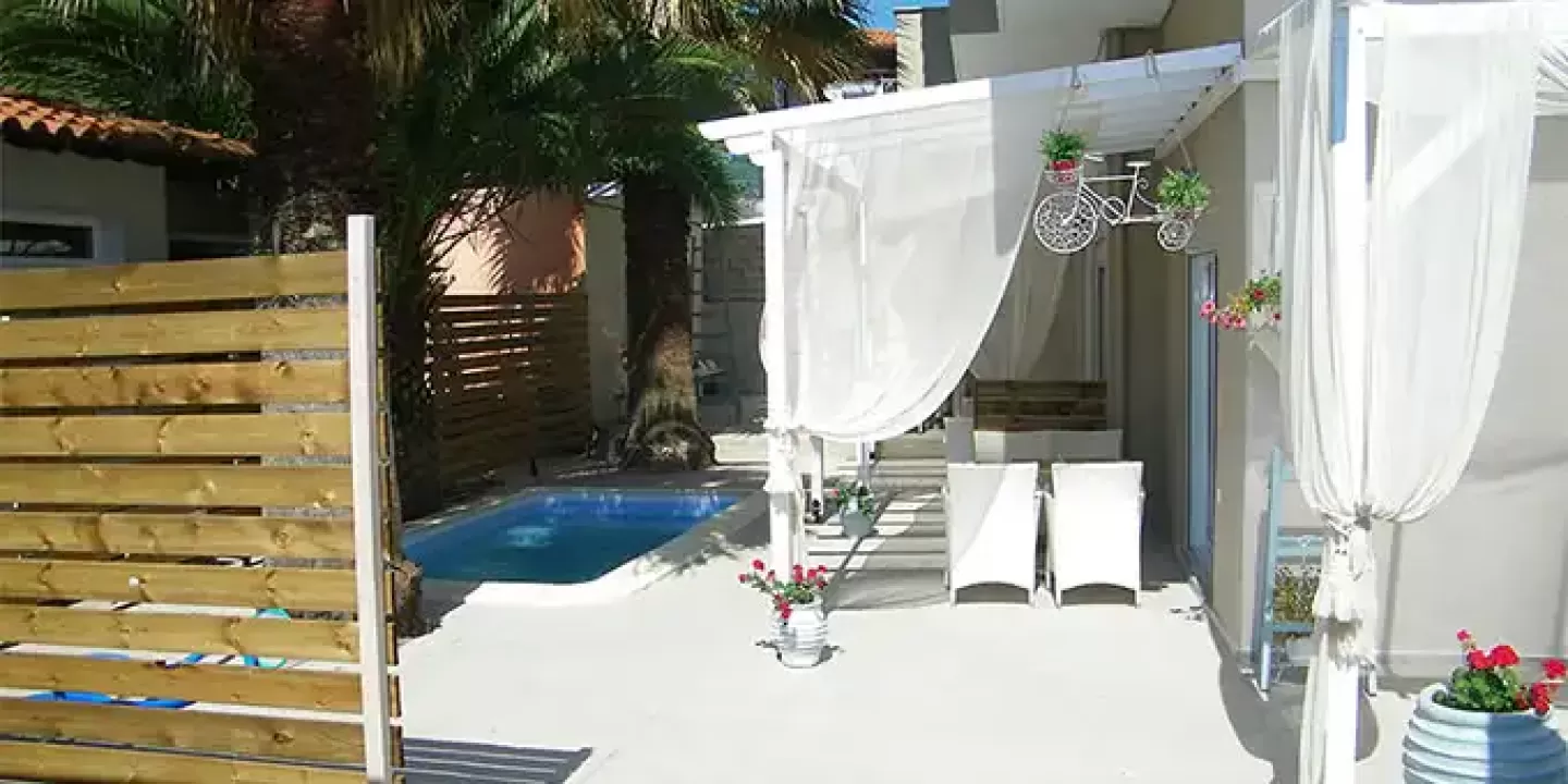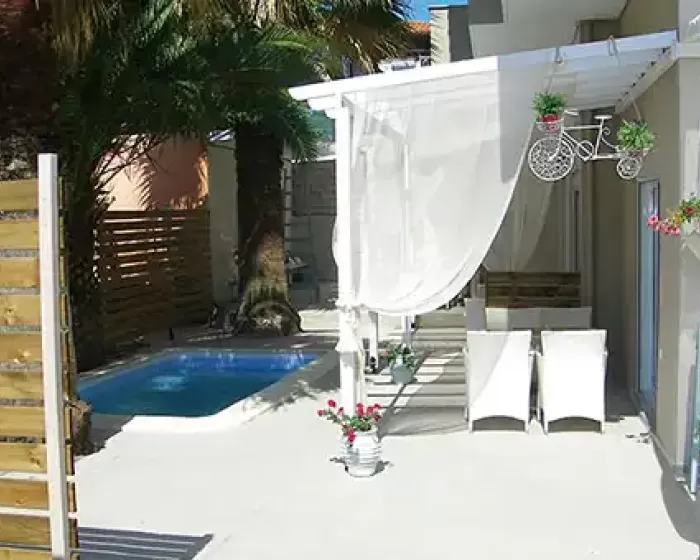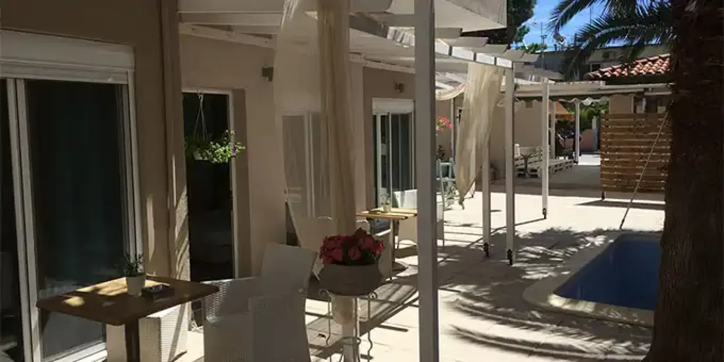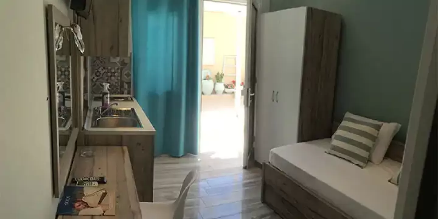 U ponudi su četvorokrevetni studio i apartmani, koji se nalaze u prizemlju. Svi imaju SAT TV, wifi internet i klima uredjaj. Za više detalja kliknite na broj sobe: dvokrevetni studio 3, trokrevetni apartman 4, četvorokrevetni apartman 1, apartman 2.