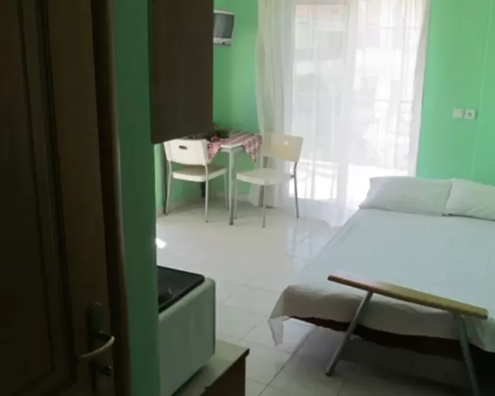kupatilo, opremljena mini-kuhinja, frižider, TV, klima-uredjaj, terasa sa garniturom za sedenje