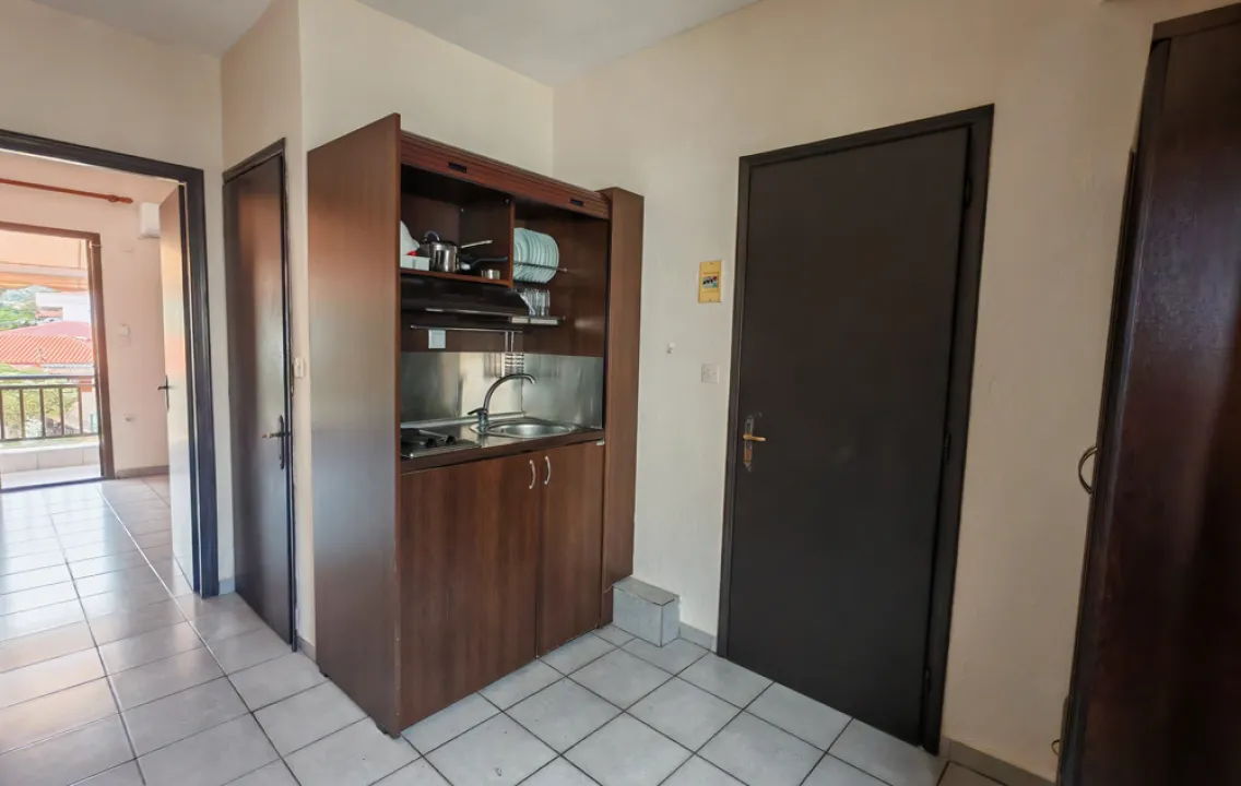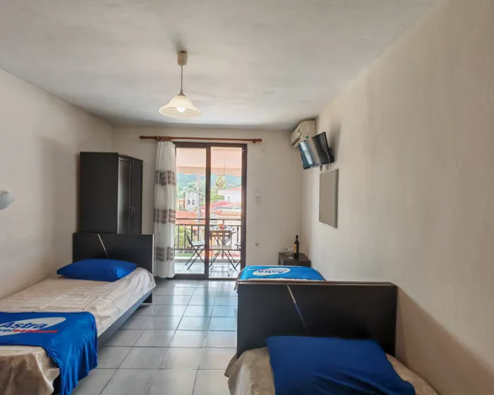Studio - kupatilo, opremljena mini-kuhinja, frižider, klima-uredjaj, SAT TV, balkon sa garniturom za sedenje.