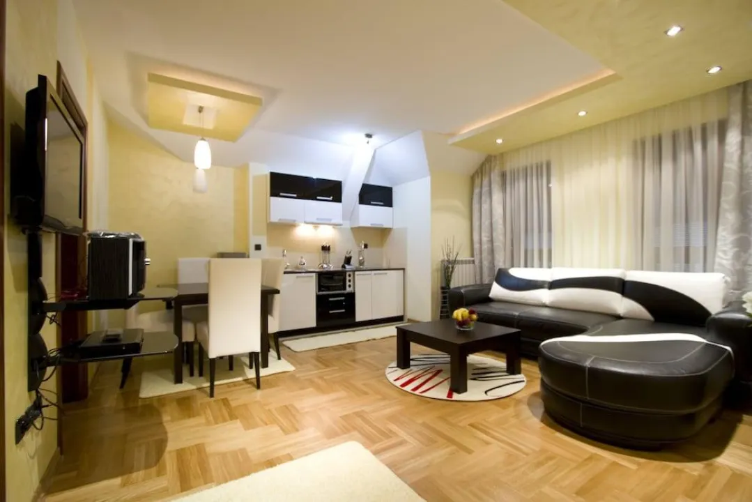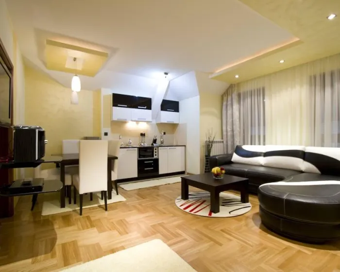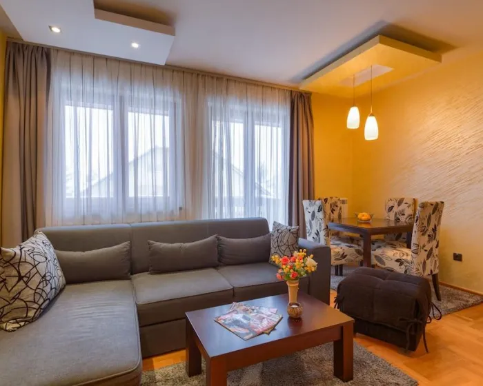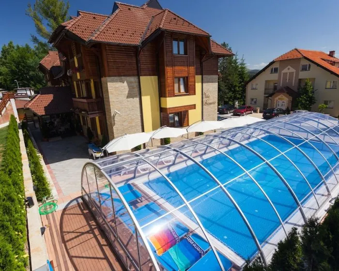 Sobe su opremljene centralnim grejanjem. Gosti mogu uživati u pogledu na planinu sa balkona ili terase. Sobe imaju bračni krevet i sofu. Gosti takođe mogu rezervisati odvojene spavaće sobe. Telefon, satelitska televizija i WiFi (bez dodatne naplate) obezbeđuju optimalnu udobnost. Papuče su uključene. Kupatila su opremljena tušem i kadom. Takođe je moguće rezervisati sobe prilagođene osobama u invalidskim kolicima. Smeštaj ima porodične sobe i sobe za nepušače.