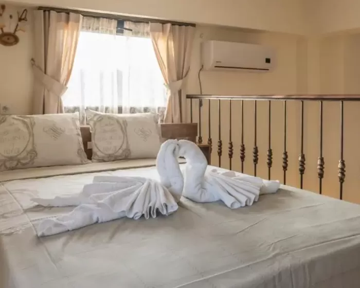 Napomena: mogućnost iznajmljivanja cele vile, ukupno 8 smeštajnih jedinica različite strukture, sadrže 35+1 kreveta. U pojedinim slučajevima moguća su odstupanja mera ležaja od našeg standarda. Grčki standard za normalni ležaj je 185cm-200cm sa 75-90cm, a bračni ležaj (dve osobe) 185–200cm sa 120–155cm. Korišćenje klima uređaja, WI-FI interneta, peškira - BESPLATNO.