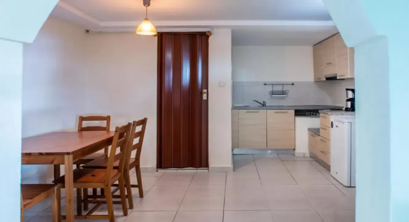 Broj 06: 1/4 apartman (pogled more) 1. sprat – u jednoj prostoriji kuhinja i kanabe (160cm*200cm), a u drugoj prostoriji bračni ležaj.