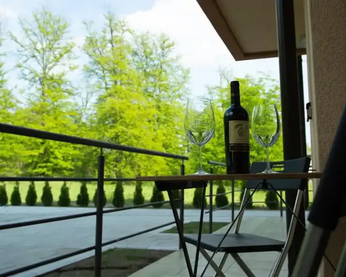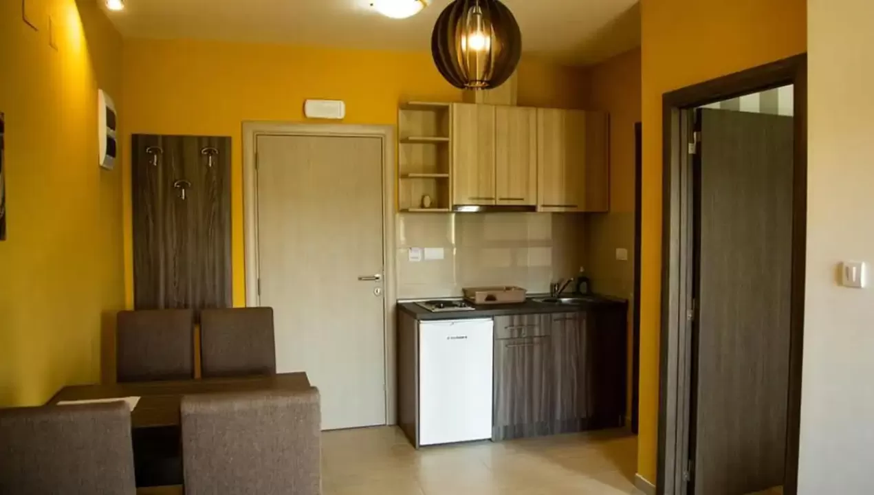 kupatilo sa tušem, peškiri, opremljena mini-kuhinja, klima-uredjaj, LCD TV, terasa