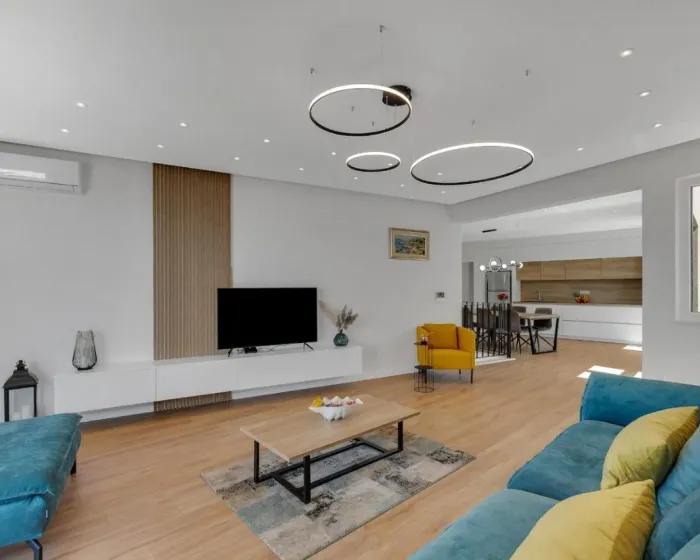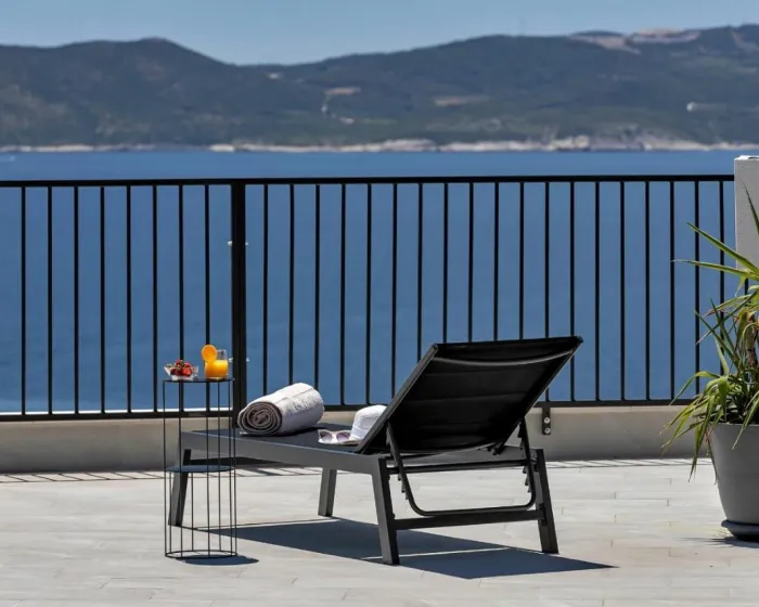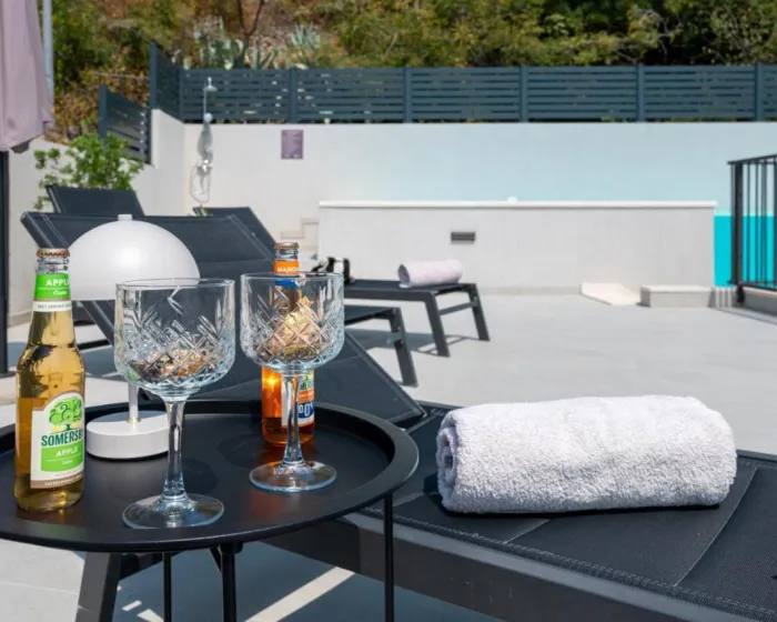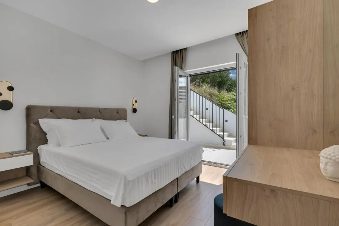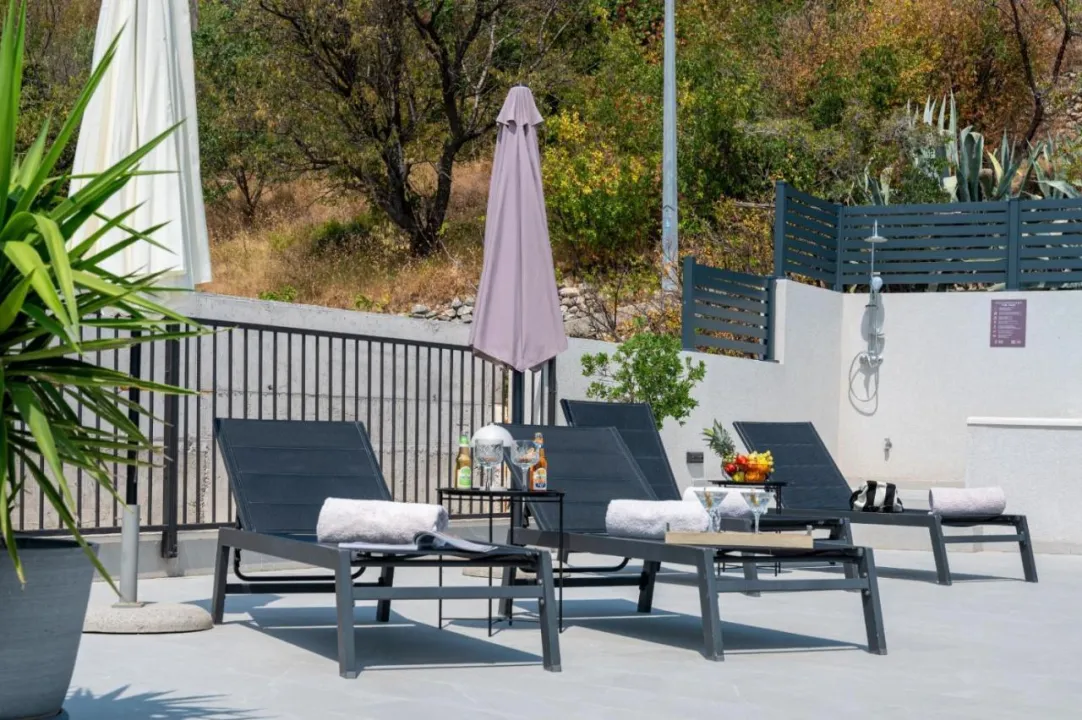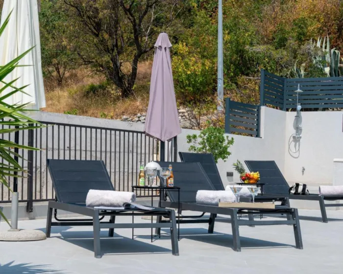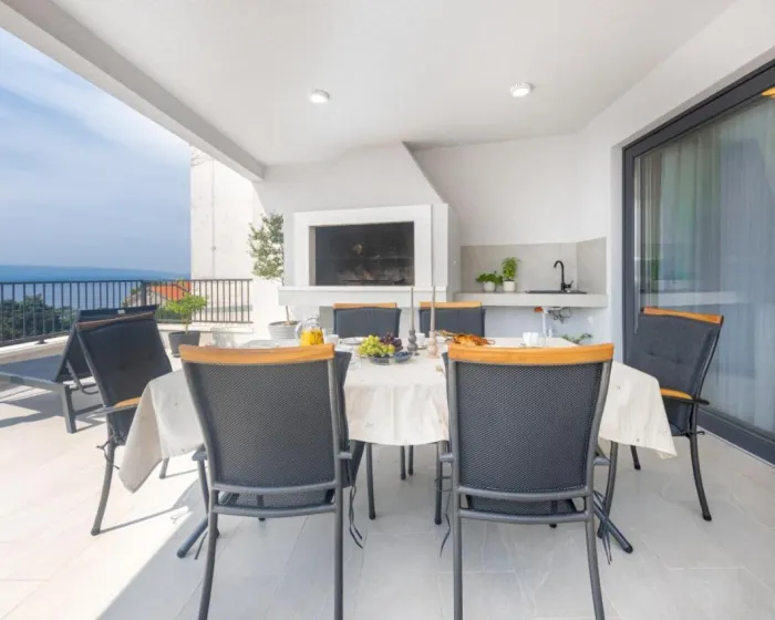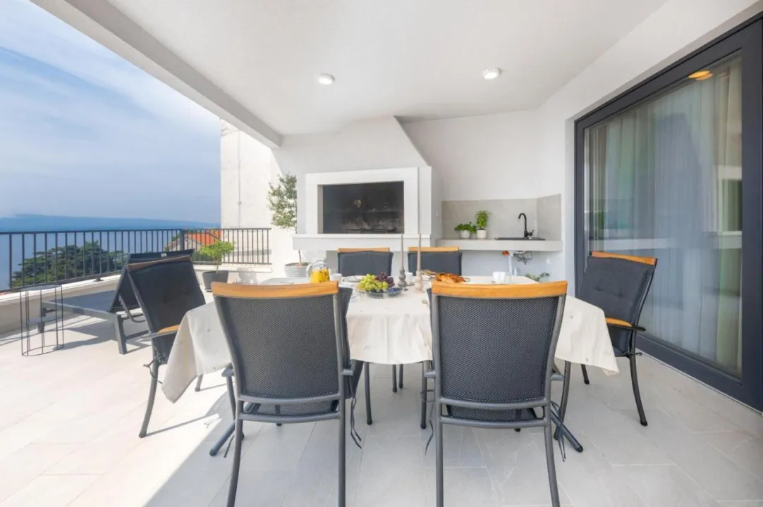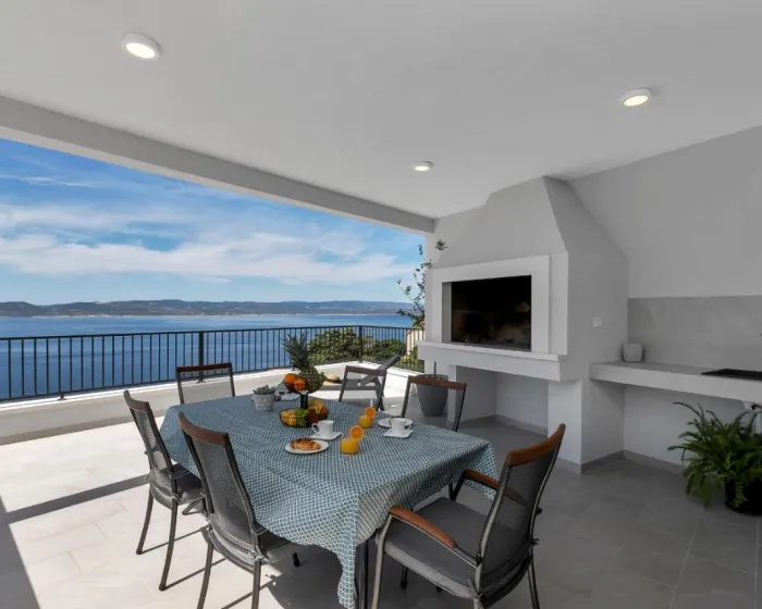 Prostrana vila ima 3 spavaće sobe, 4 kupatila, posteljinu, peškire, flat-screen TV, trpezariju, potpuno opremljenu kuhinju i terasu sa pogledom na more. Objekat ima spoljni prostor za ručavanje.