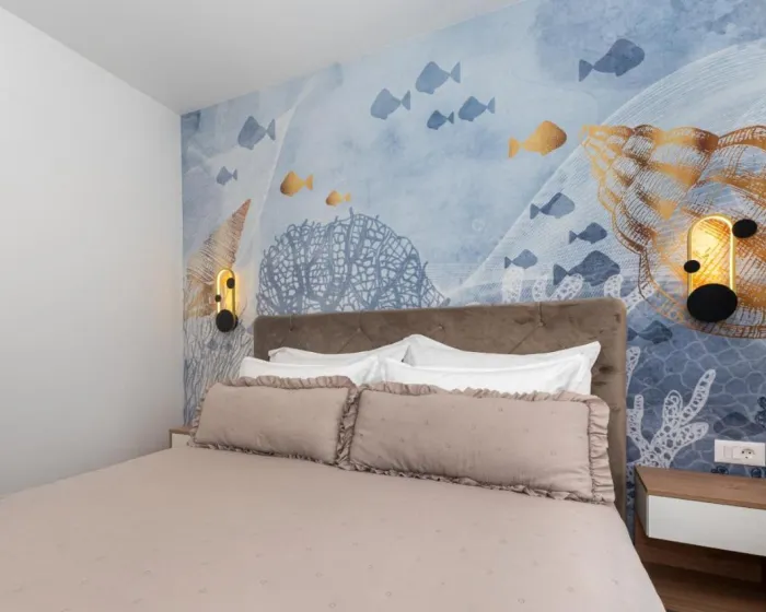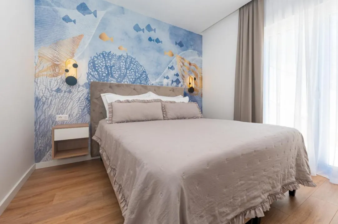 Smestajni objekat Family-friendly apartmani sa bazenom nalazi se na udaljenosti od 300 metara od plaže Berulia i 30 kilometara od Plavo