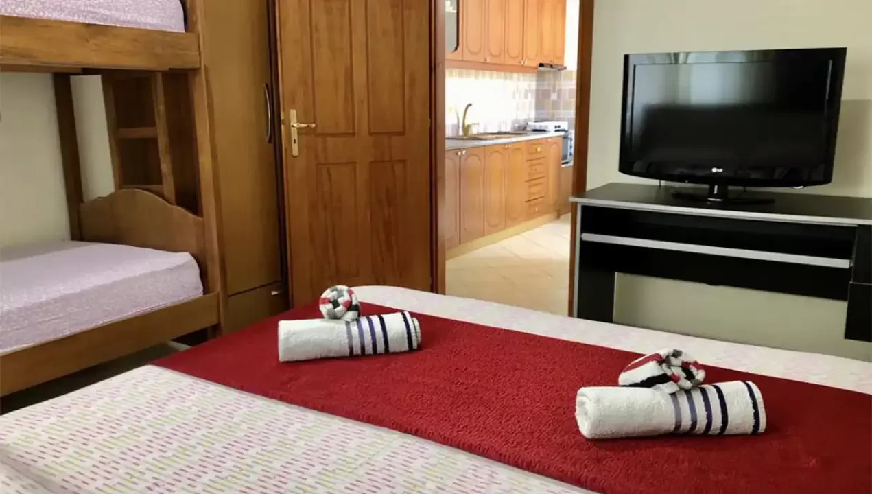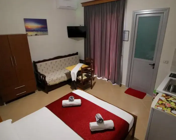 Vila Caca Ksamil je vrlo prijatna porodična vila, smeštena u uskusno uredjenom dvorištu, u širem centru letovališta Ksamil. Od najbliže uredjene gradske plaže Ksamila vila Caca je udaljena nepunih 700 metara, te se laganim hodom do plaže može stići za desetak minuta. Do najbližih turističkih sadržaja, kao što su market, apoteka, kafić ili taverna, ima oko 300 metara udaljenosti. Na raspolaganju gostima vile su i terasa sa druženje gostiju, kao i uredjeni roštilj prostor. Kako je vila Caca Ksamil smeštaj apartmanskog tipa, apartmani mogu primiti do četiri osobe i u sastavu imaju i opremljenu kuhinju, mašinu za pranje sudova. Deca spavaju na krevetima na sprat.