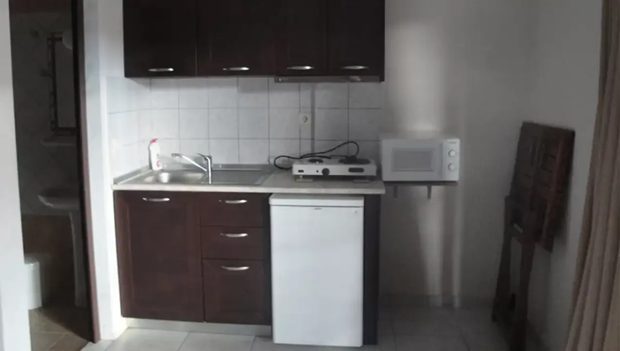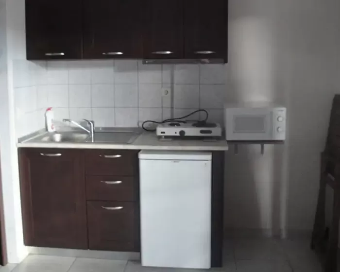 kupatilo, opremljena mini kuhinja, frižider, mikrotalasna pećnica, TV, klima-uredjaj (doplata), terasa sa garniturom za sedenje