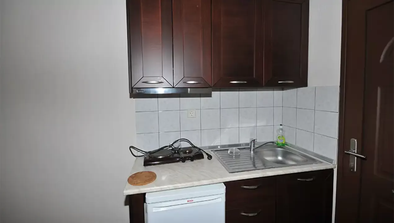 Svi studiji i apartmani imaju terasu, wc i tuš sa toplom i hladnom vodom, sto i stolice, orman, kuhinju sa frižiderom koja je opremljena prema broju osoba (tanjiri, čaše, šolje, escajg, šerpa, tiganj, djezva za kafu). Promena posteljine je na pola smene, za smene duže od 7 noći. Domaćini kuća na dan zamene posteljine dostavljaju čistu posteljinu koju gosti sami menjaju kao što i sami održavaju higijenu apartmana tokom svog boravka. Pored standardne opreme apartmani mogu imati odredjenu opremu koja ih izdvaja u odnosu na ostale apartmane iz ponude. U cenovnicima se pored naziva određenih kuća nalaze brojevi. Brojevi su konkretni brojevi određenog studija ili apartmana koji se u određenom smislu razlikuje u odnosu na studije/apartmane istog tipa u okviru kuće. To se može odnositi na veličinu ili lokaciju terase, kao i na prostranost samog apartmana, zbog koje i postoji razlika u ceni u odnosu na ostale iz određene kuće. Molimo goste da ponesu svoje peškire, s obzirom da peškiri nisu deo standardine opreme studija/ apartmana.