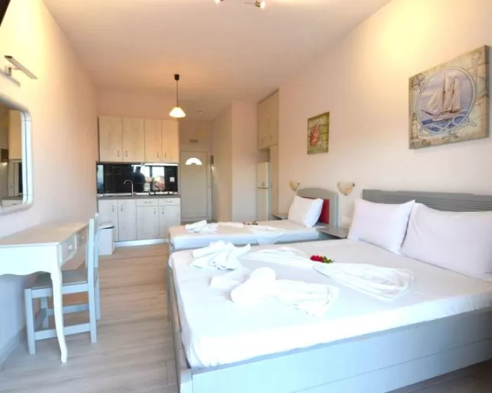 Veoma kvalitetna kuća sa prostranim studijima, na svega par minuta hoda od plaže Valtos, u centralnom delu letovališta kao i odlični domaćini, garancija su dobrog i kvalitetnog odmora. Putnici koji se vraćaju iz godine u godinu su najbolja preporuka.