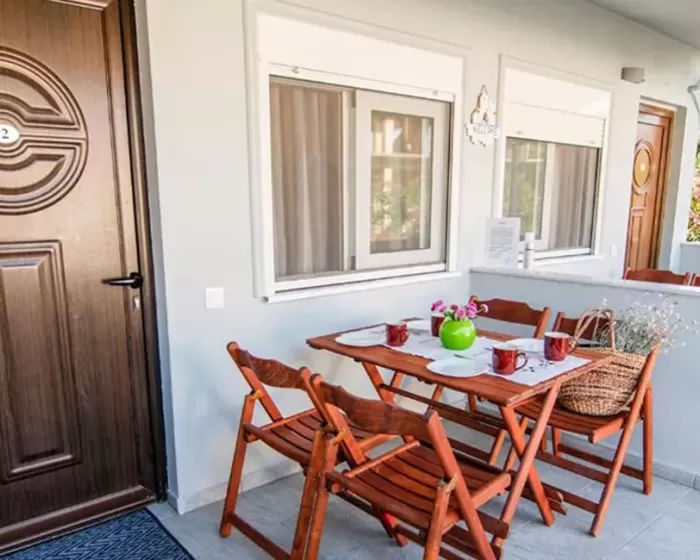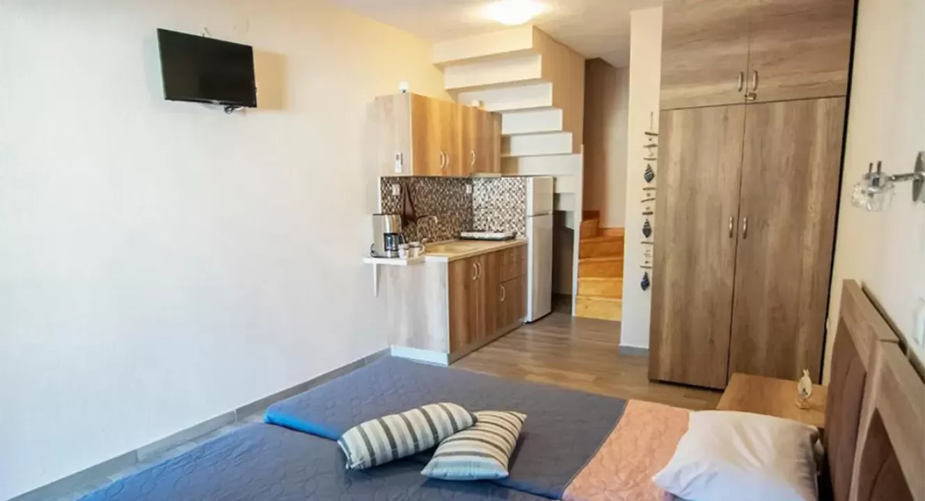 kupatilo, opremljena mini-kuhinja, klima-uredjaj, TV, terasa sa garniturom za sedenje