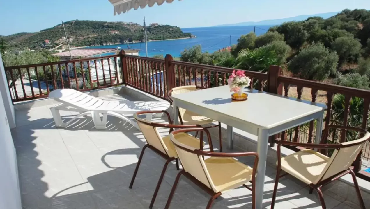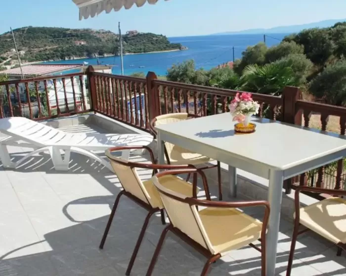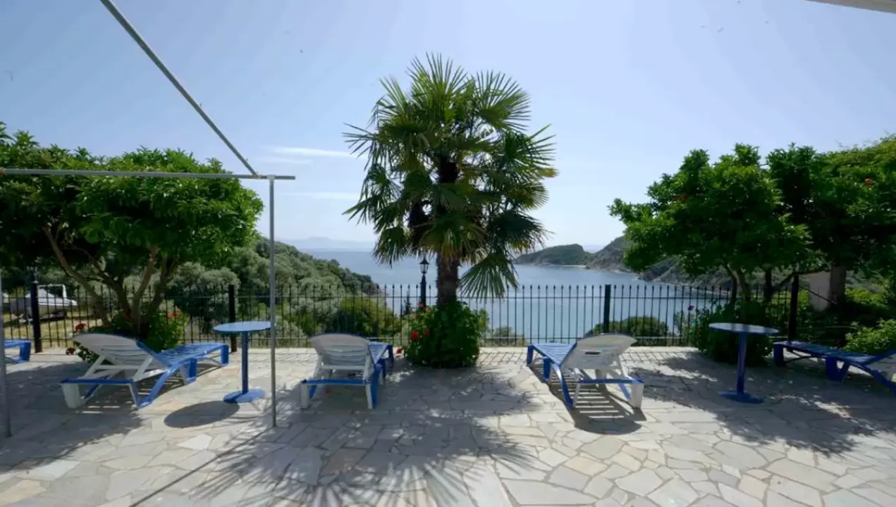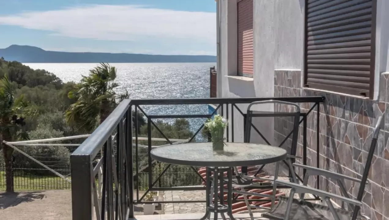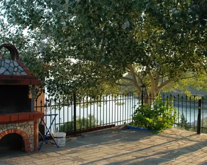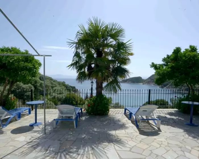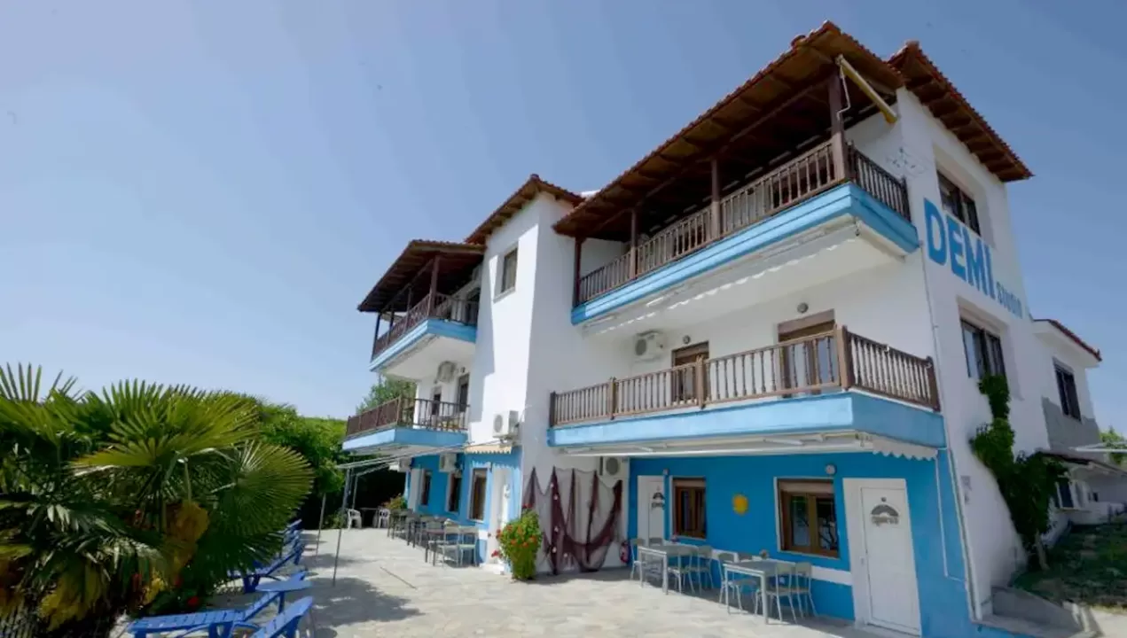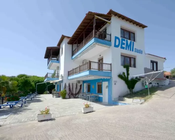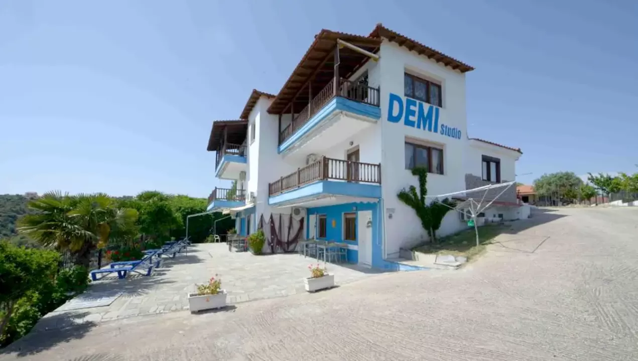 Vila Demi Amuljani se nalazi na suprotnoj obali u odnosu na grad i luku Amuljani, na oko 1500 metara od luke, u potpunosti okružena maslinama i zelenilom, sa panoramskim pogledom na zaliv i more. Vila Demi Amuljani je kompletno renovirana za sezonu leto 2020. Do najbliže, Kalopigado plaže, ima oko 70 metara udaljnosti, dok je Alikes plaža na 100 metara udaljenosti. Mini market je na 150 metara, a lokalni riblji restoran na 200 metara od ove uvek tražene vile.