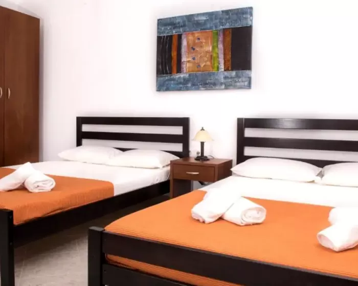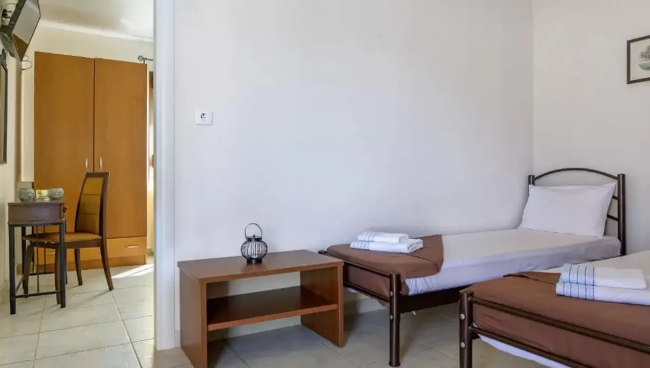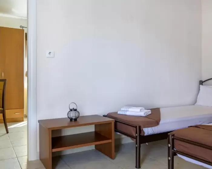 1/4 apartman (prizemlje) - u jednoj sobi mini kuhinja i dva obična ležaja i u drugoj sobi jedan bračni ležaj.