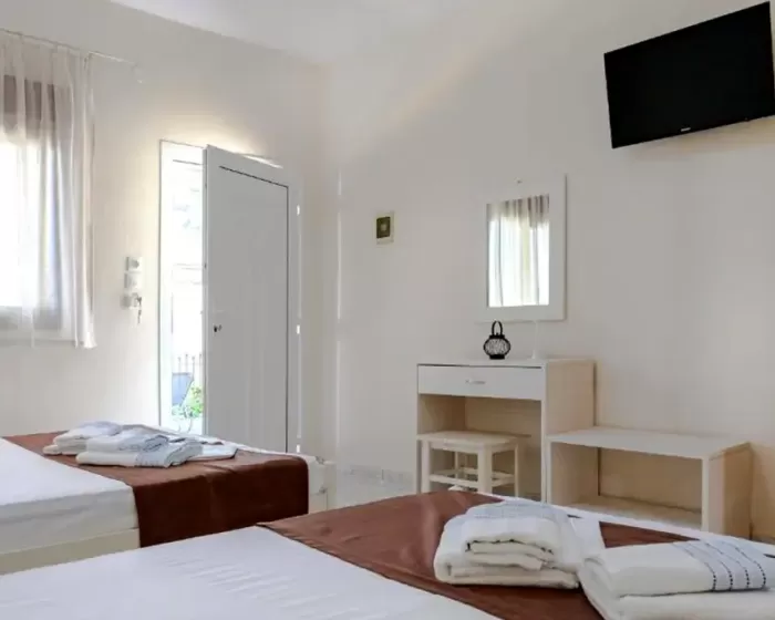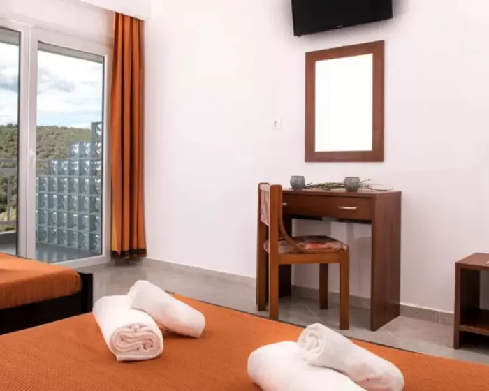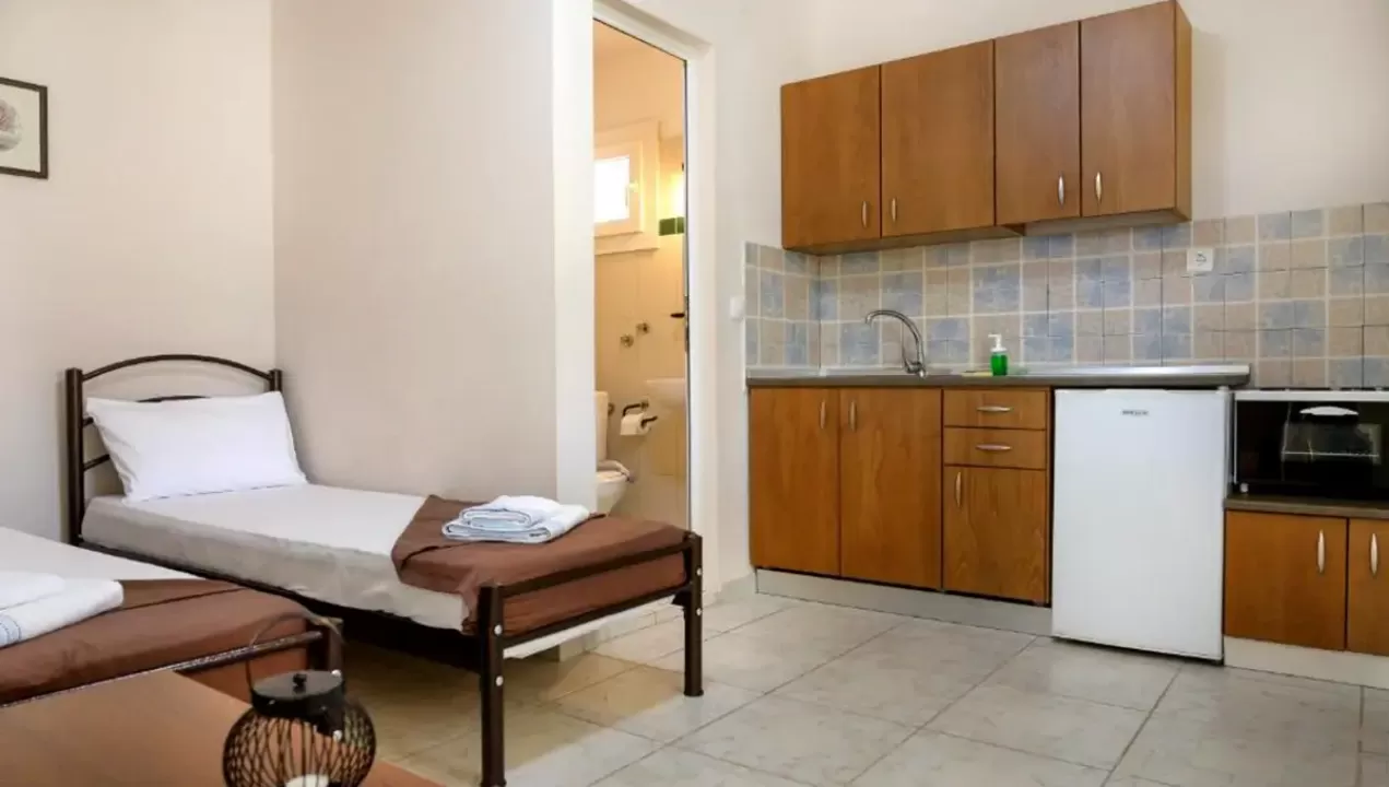 1/4 studio* (prvi sprat) - u jednoj sobi mini kuhinja i dva obična ležaja iz kojih se izvlači po jedan običan ležaj (veličine 190cmx85cm).