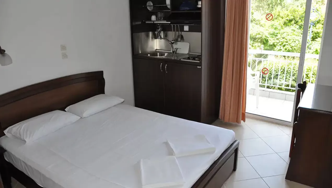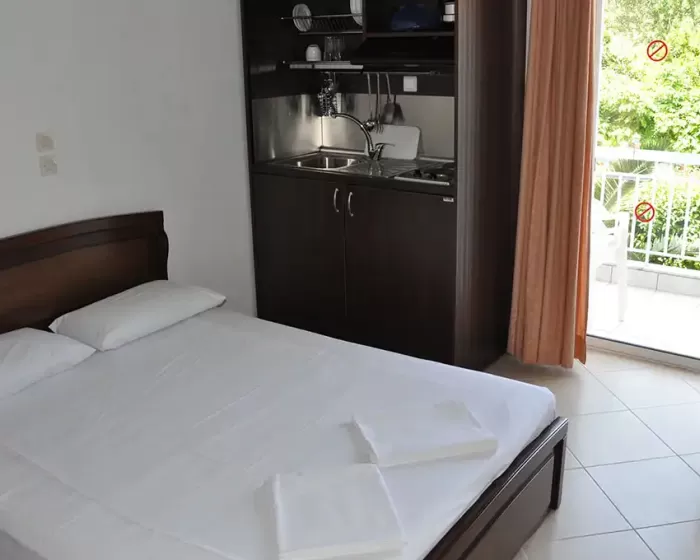 1/3 studio - u jednoj prostoriji mini kuhinja i jedan običan i jedan bračni ležaj.