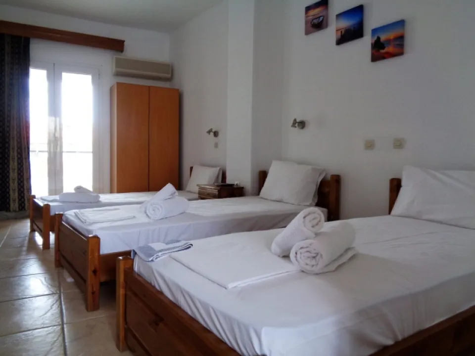 Vila Dina Kalitea, se nalazi u samom centru Kalitee i na oko 200m od plaže. Vila nudi smeštaj u trokrevetnim studijima koji sadrže čajnu kuhinju (rešo sa dve grejne ploče) sa frižiderom, kupatilo sa tuš kadom, klima uređaj i LCD TV. Studiji se nalaze na prvom spratu i pružaju delimični bočni pogled na more. Vila je odlično pozicionirana na samo par koraka od svih sadržaja. U neposrednoj blizini se nalazi i veliki park iz koga se pruža nezaboravan pogled na zaliv Toroneos.