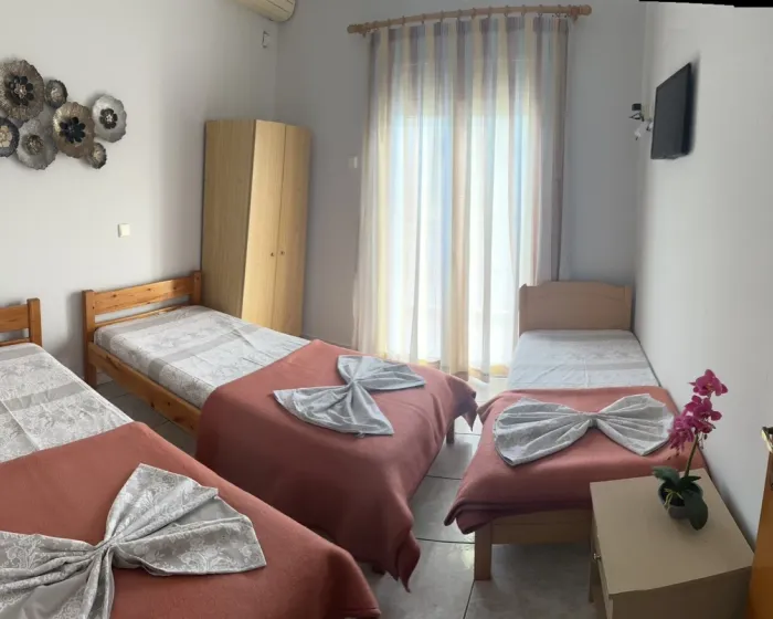 Vila Dina Leptokarija se nalazi u glavnoj ulici letovališta, udaljena 100 metara od mora, u blizini velikog marketa Masutisa. U ponudi imamo dvokrevetne i trokrevetne studije, koji su vrlo skučeni.