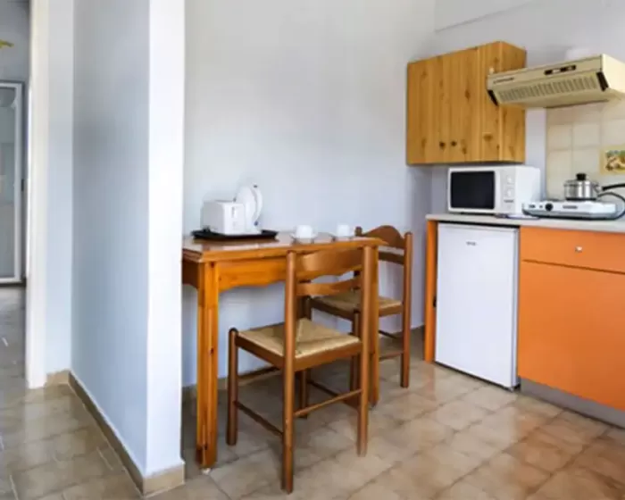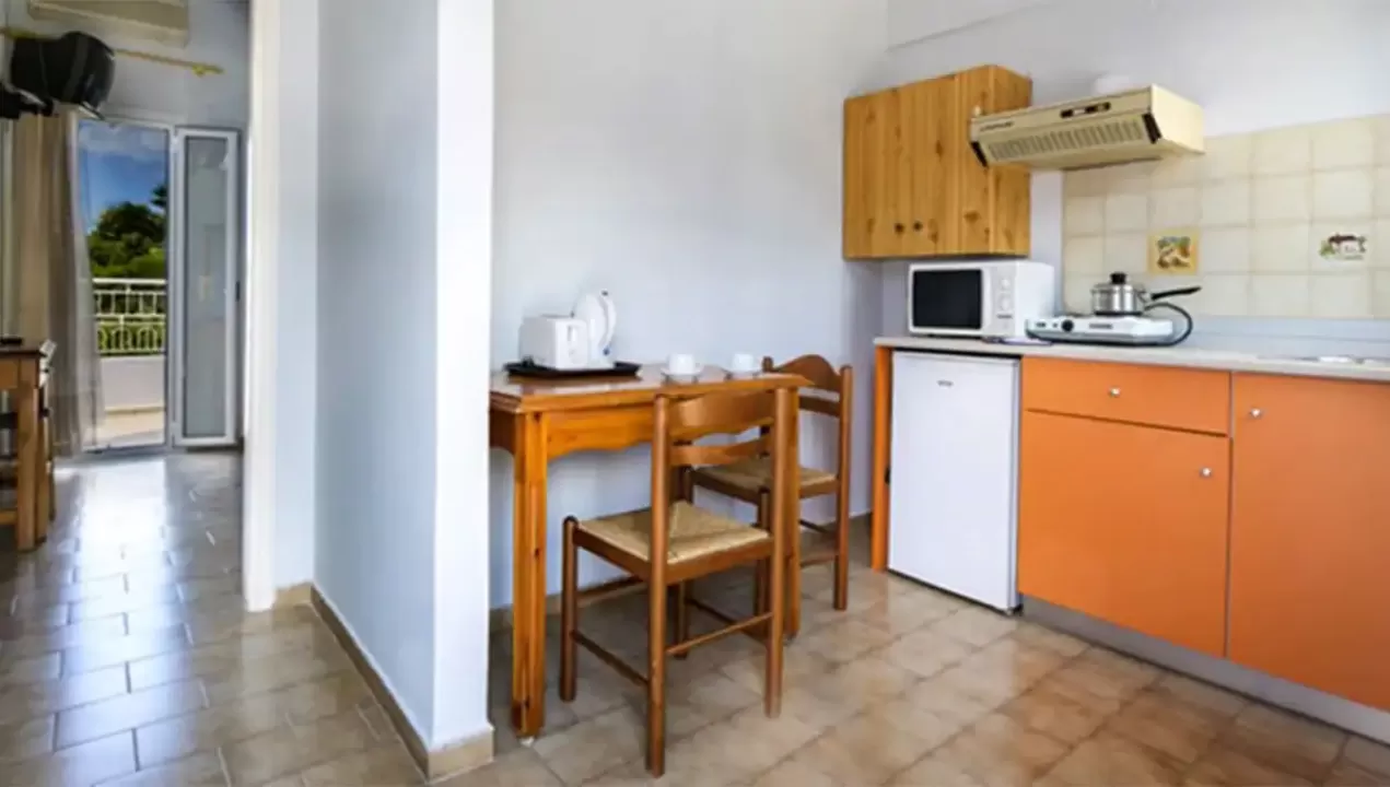 Raspolaže dvokrevetnim i trokrevetnim apartmanima koji se nalaze na prizemlju i I spratu vile. Svaka smeštajna jedinica ima kompletno opremljenu čajnu kuhinju, kupatilo ( tuš / WC ), TV, balkon. Studiji raspolažu klima uredjajem čije se korišćenje doplaćuje na licu mesta (5 € dnevno po studiju ). Ova doplata nije obavezna. Vila ima peškire. Jedan od apartmana ima prolaznu terasu, u cenovniku je obeležen sa p.t. i prodaje se po nižoj ceni.
