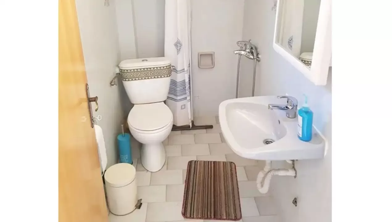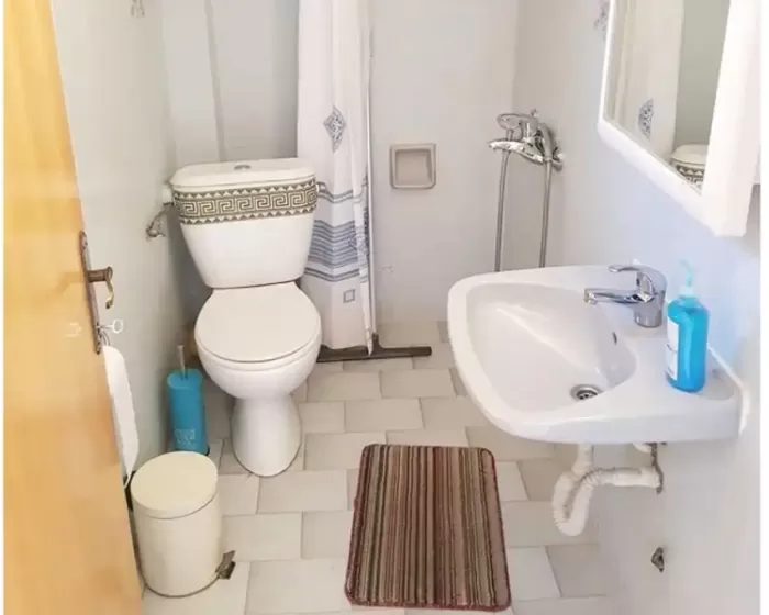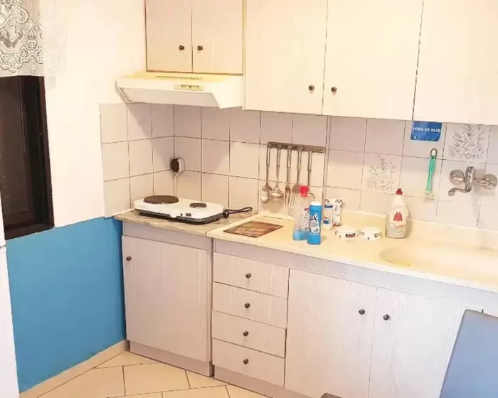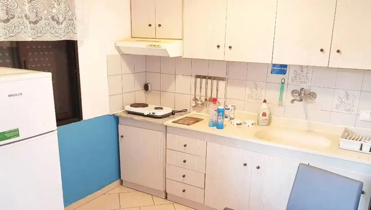 kupatilo, mini kuhinja sa posudjem i priborom, frižider, klima-uredjaj, TV, terasa sa garniturom za sedenje
