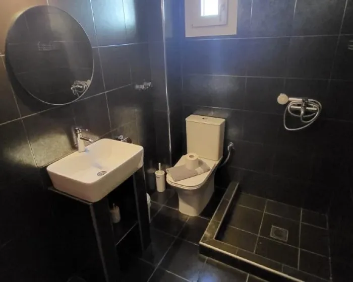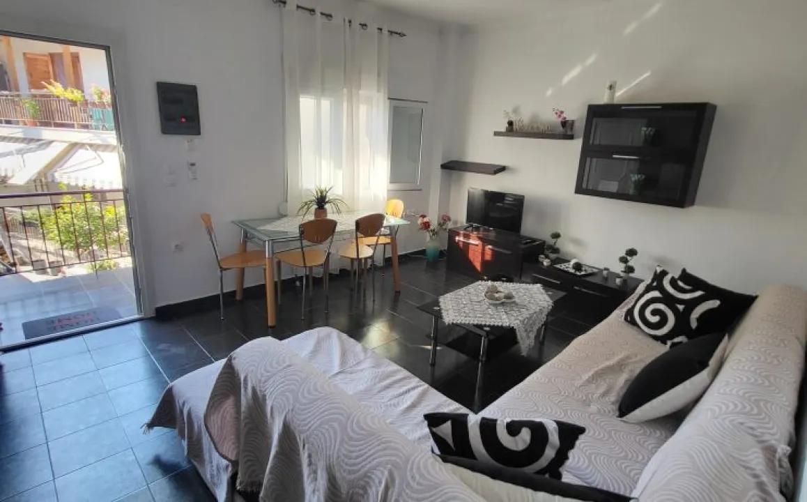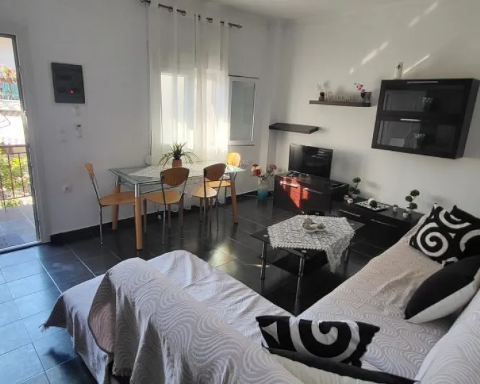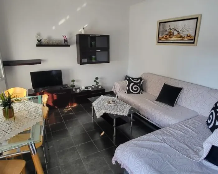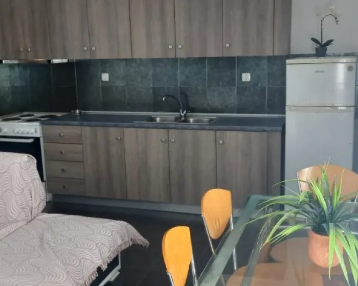 kupatilo, opremljena kuhinja, frižider sa zamrzivačem, klima-uredjaj, SAT TV, terasa sa garniturom za sedenje (ulazni deo)