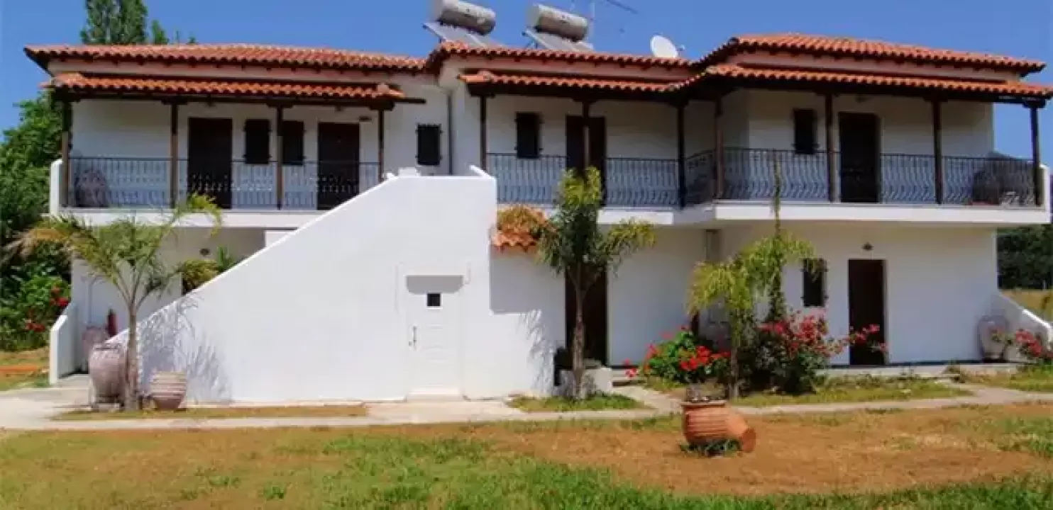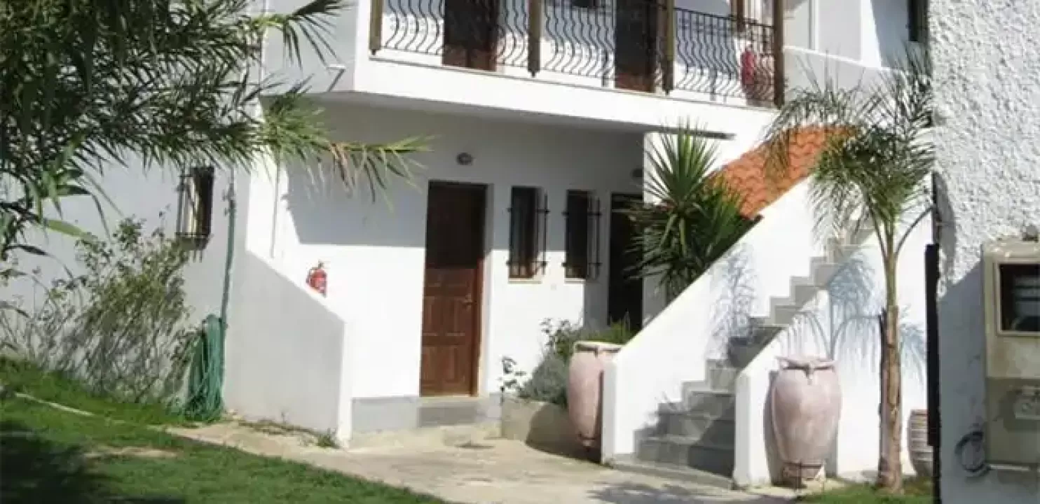 Vila Eleni Agia Paraskevi Skiatos se nalazi na oko 10 kilometara od grada Skijatosa u idiličnom, mirnom okruženju, na oko 300 metara udaljenosti od prelepe Troulos peščane plaže. Na putu do plaže (ravan put, bez uspona) je potrebno preći prometnu ulicu, tj put Skijatos grad - Kukunaries koji vodi od grada do Kukunaries plaže. U blizini se nalaze hoteli Astoria i Korali, kao i autobuska stanica, supermarket, kafići i brojni restorani.