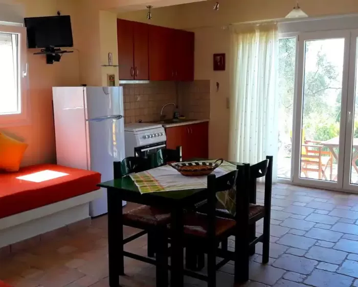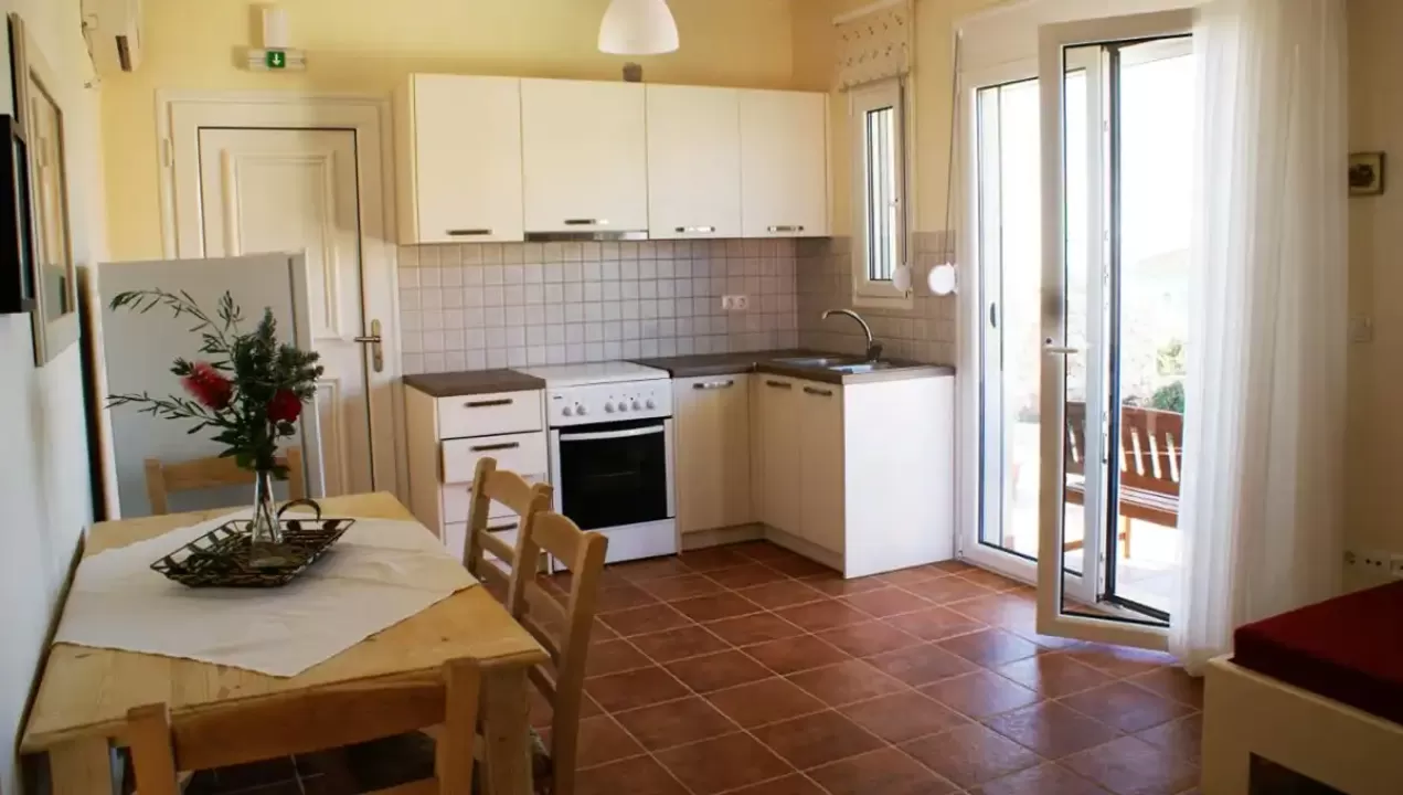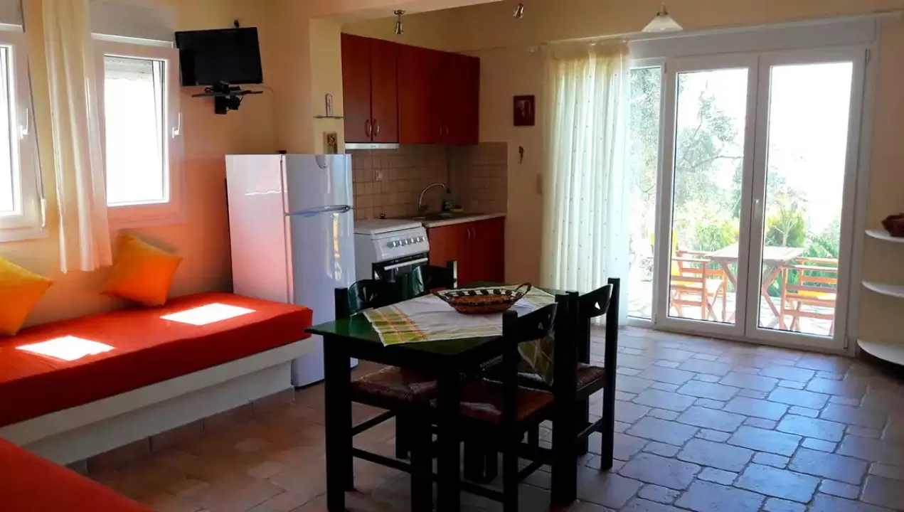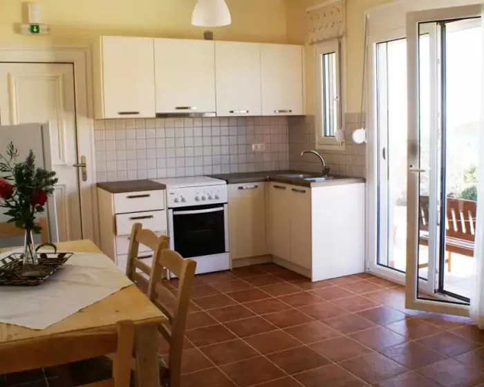 Vila Erato Vasiliki Lefkada se nalazi na uzvišenju, na oko 2 kilometra udaljenosti od plaže, sa prelepim, panoramskim pogledom na selo Poros i na sunčanu plažu Mikros Gialos, odakle se može videti jonsko more i plaža Vasiliki. Grad Lefkada se nalazi na oko 36 kilometara od smeštaja. Aerodrom Aktion je udaljen oko 56 kilometara.