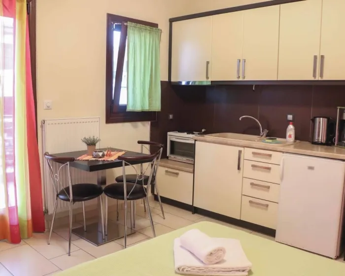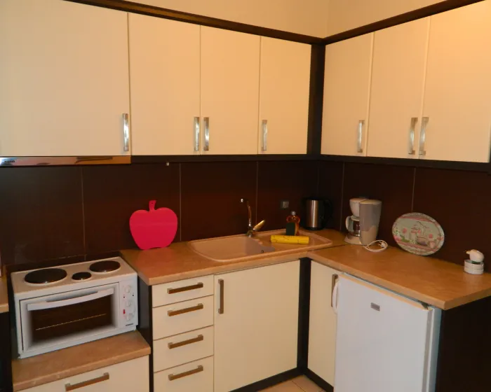 1/4 studio - u jednoj prostoriji mini kuhinja, jedan bračni i jedan kanabe (smeštaj za dvoje odraslih i dvoje dece).